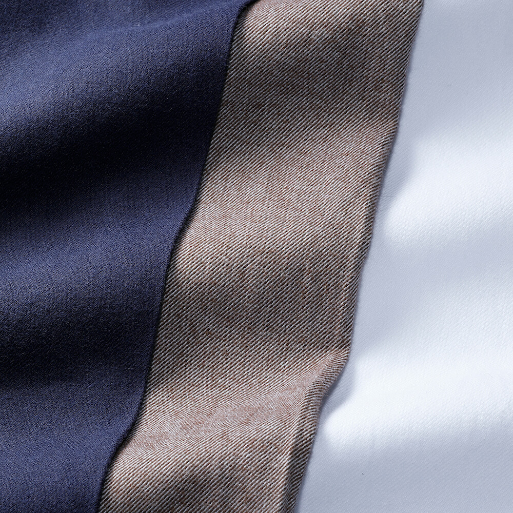 ・生地は起毛感が控えめなツイルコットンフランネル。ほっこりしがちなネルシャツですが、ツイル織りのため綾目が立ってクリーンな雰囲気とネルならではの温かみを併せ持つ生地感です。