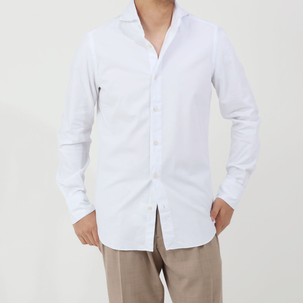 ・「Finamore (フィナモレ)」の端正な作りのドレスシャツは本国イタリアでも高評価を受けています。ご紹介するのはそのドレスで培ったテクニックを注ぎ込み、3箇所(袖付け・ボタン付け・ガゼット)をハンドで仕上げ、洗いを掛けたカジュアルシャツラインです。