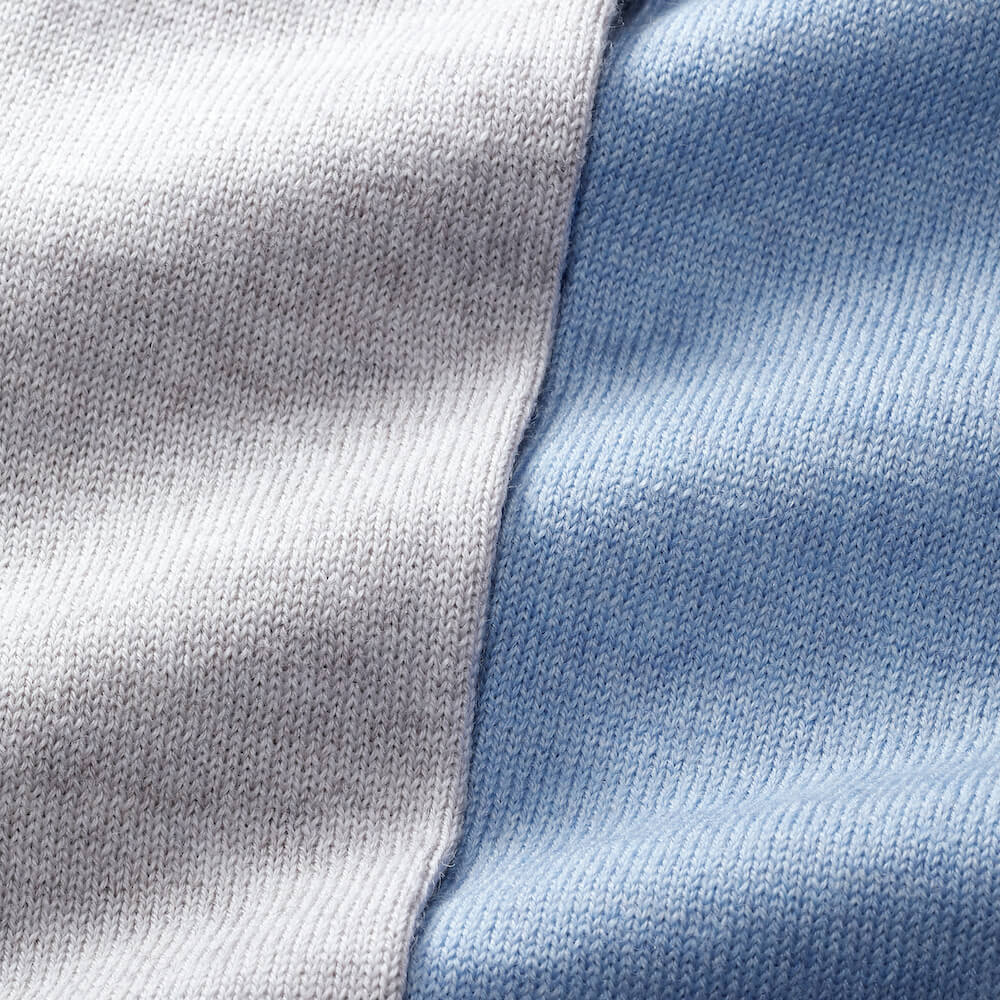 ・イタリアの名門紡績メーカーである”Zegna Baruffa”と共同開発したメリノウールの三子撚り(みこより / Triplofilo)された糸を使うことで、毛玉が出来づらく、伸縮性に富み、シワになりづらく、洗濯機のデリケースコースでケアが可能、という機能性を実現しています。