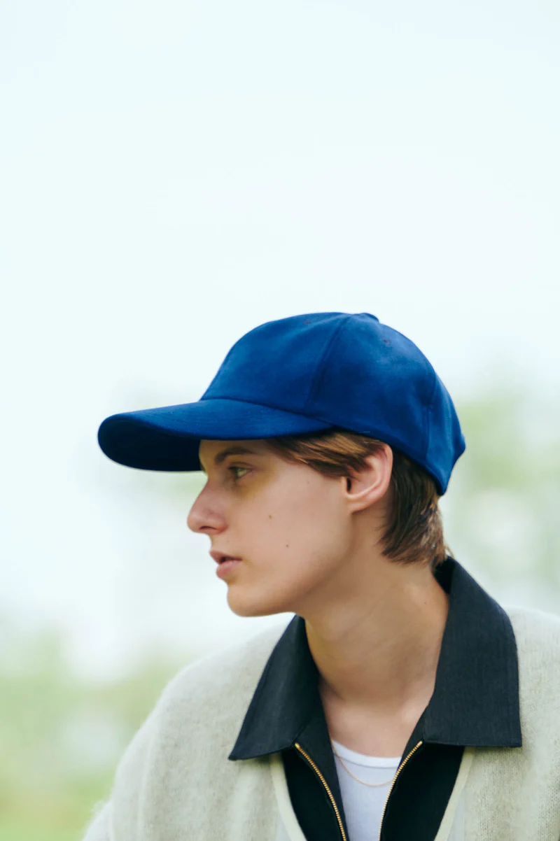 レザーと真鍮金具を合わせたパーツで調整が可能な浅めのキャップ。内装には通気性と吸湿性を備えた麻帆布を使用