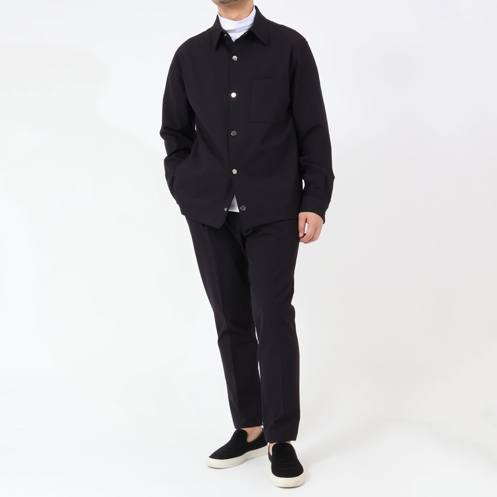 ・ウエスト廻りが楽な着感のため、クルマの運転時や長距離移動の時にもピッタリな一本です。全2色のラインナップ。セットアップとなるシャツ型ブルゾン(ブラック/ネイビー)はこちらから。