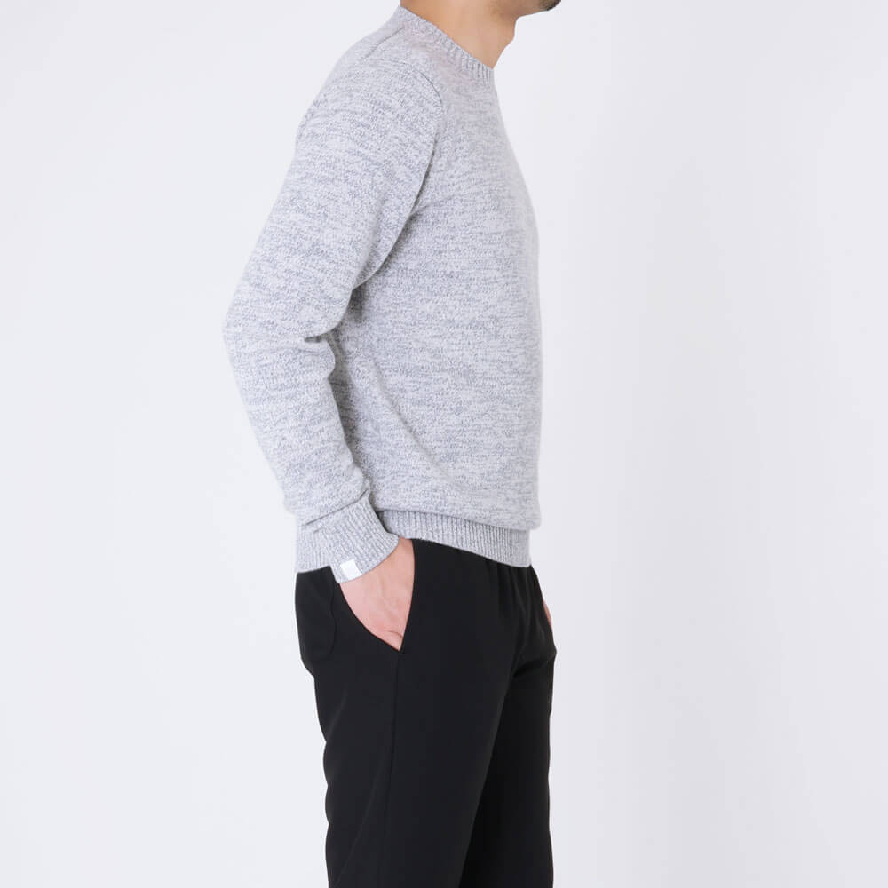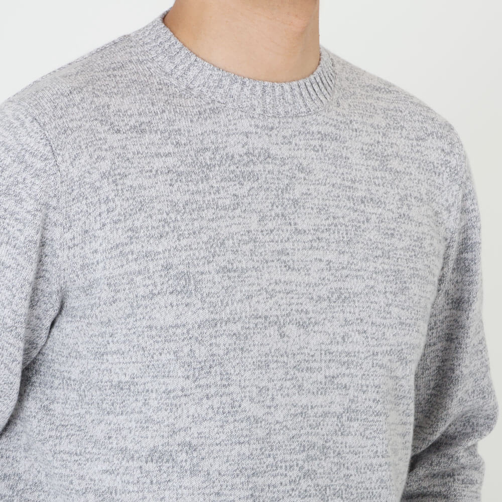 ・ネック / 袖 / 裾のリブはストレッチを効かせ伸縮性をキープしつつ、型崩れしにくいように編み立て。また、シンプルに見え過ぎないようネックのみさりげなく存在感あるリブに。