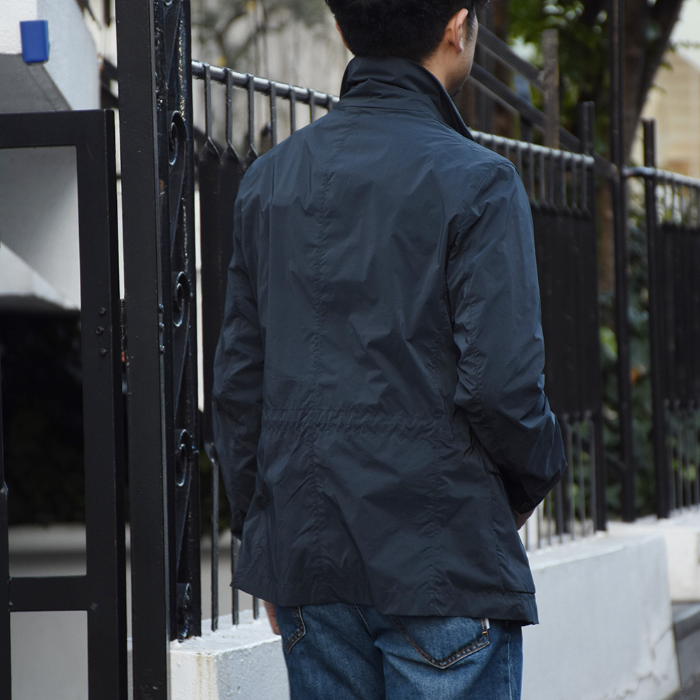 ・耐久性と防風性を備え、表面には撥水加工が施されており、機能的でもあります。グレー掛かったネイビー1色のラインナップ。