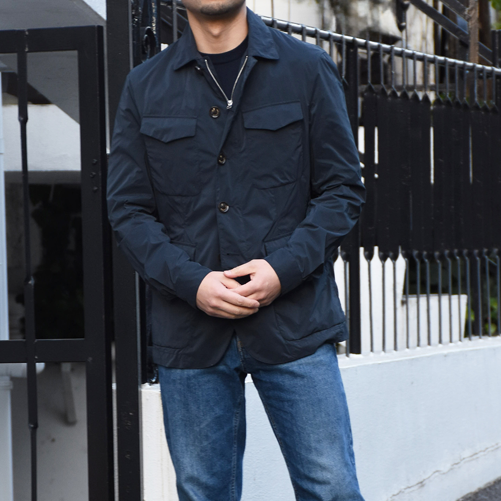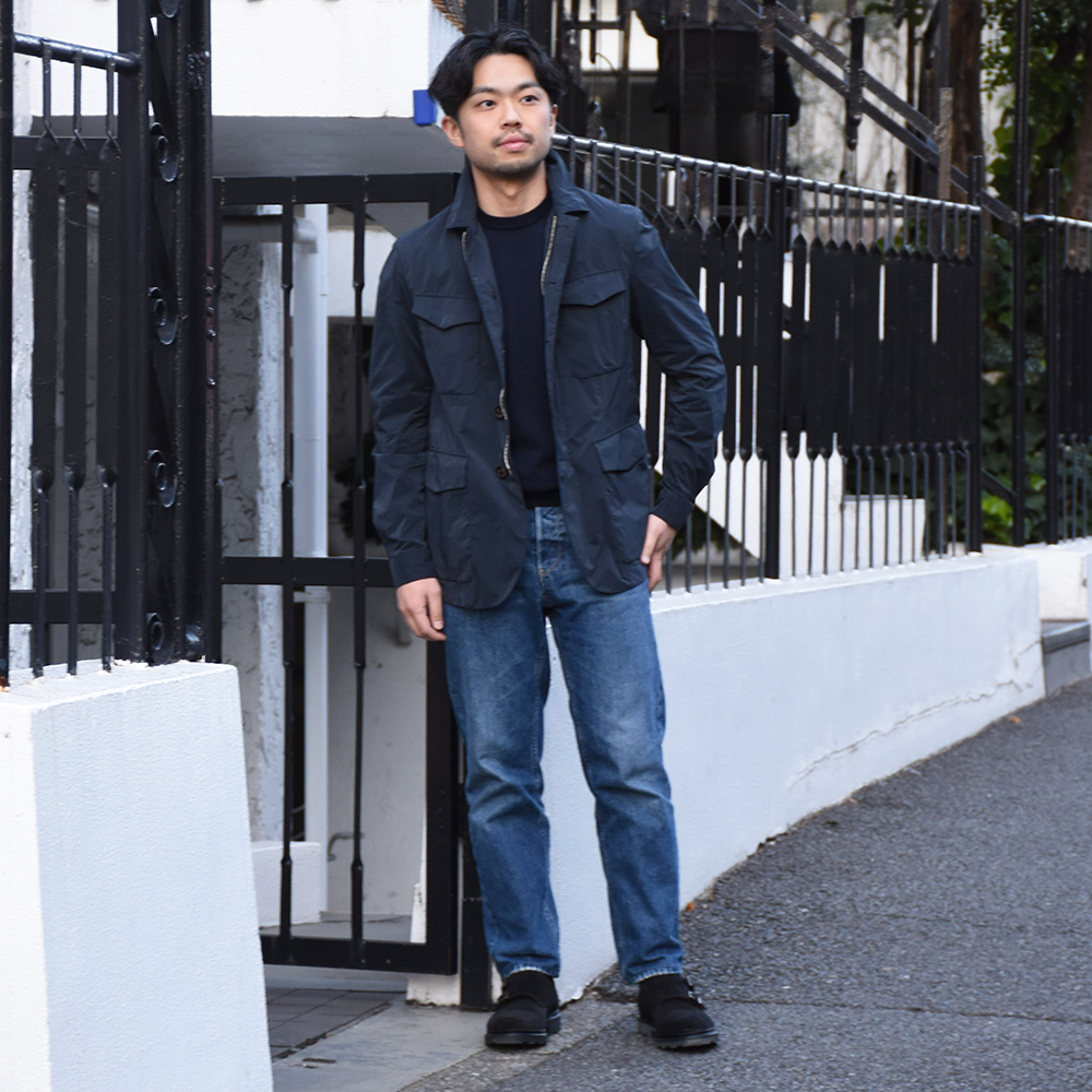 ・ミリタリー由来のオフィサージャケットをモチーフにしながらも、極力シンプルなデザインにすることでスマートに仕上げられた一着。