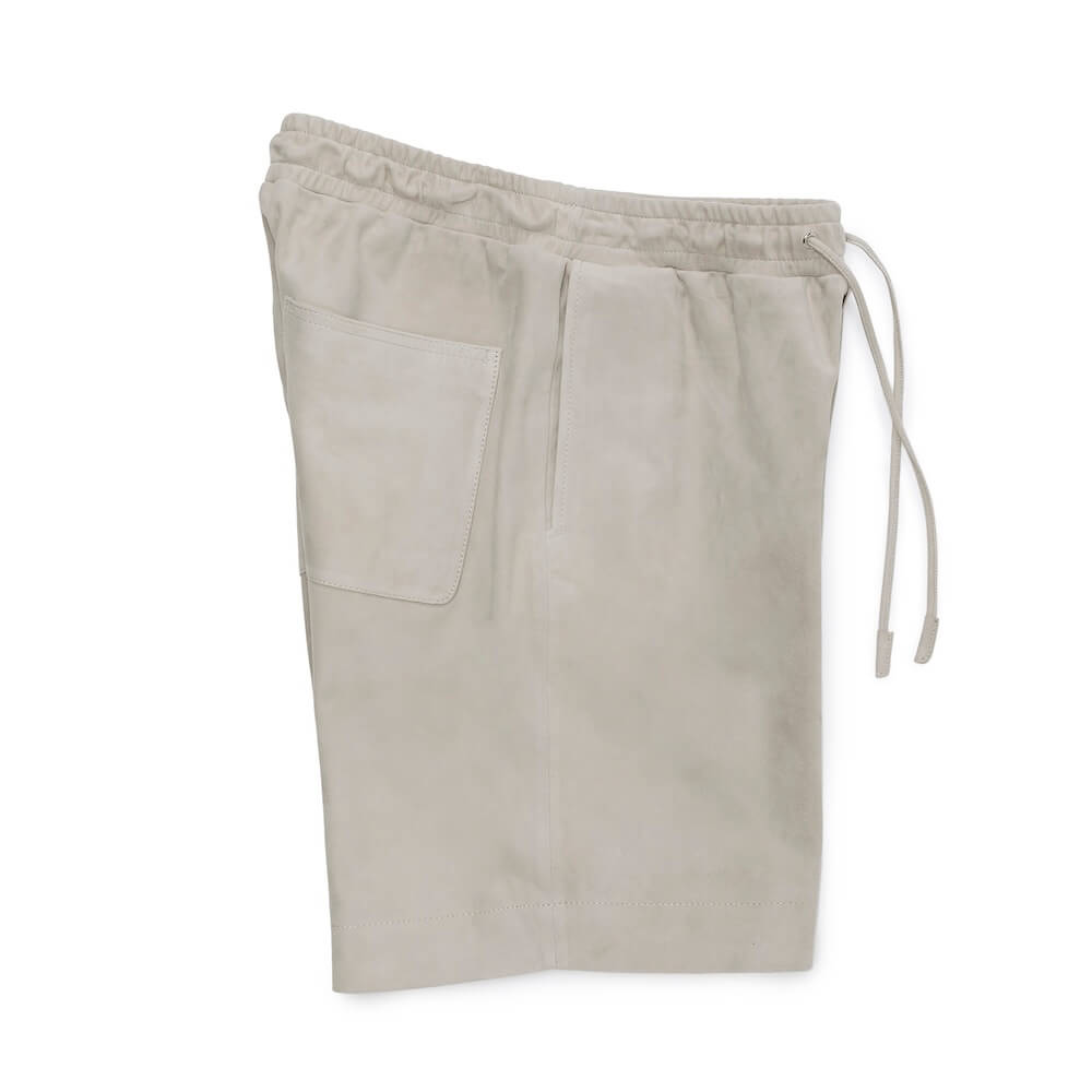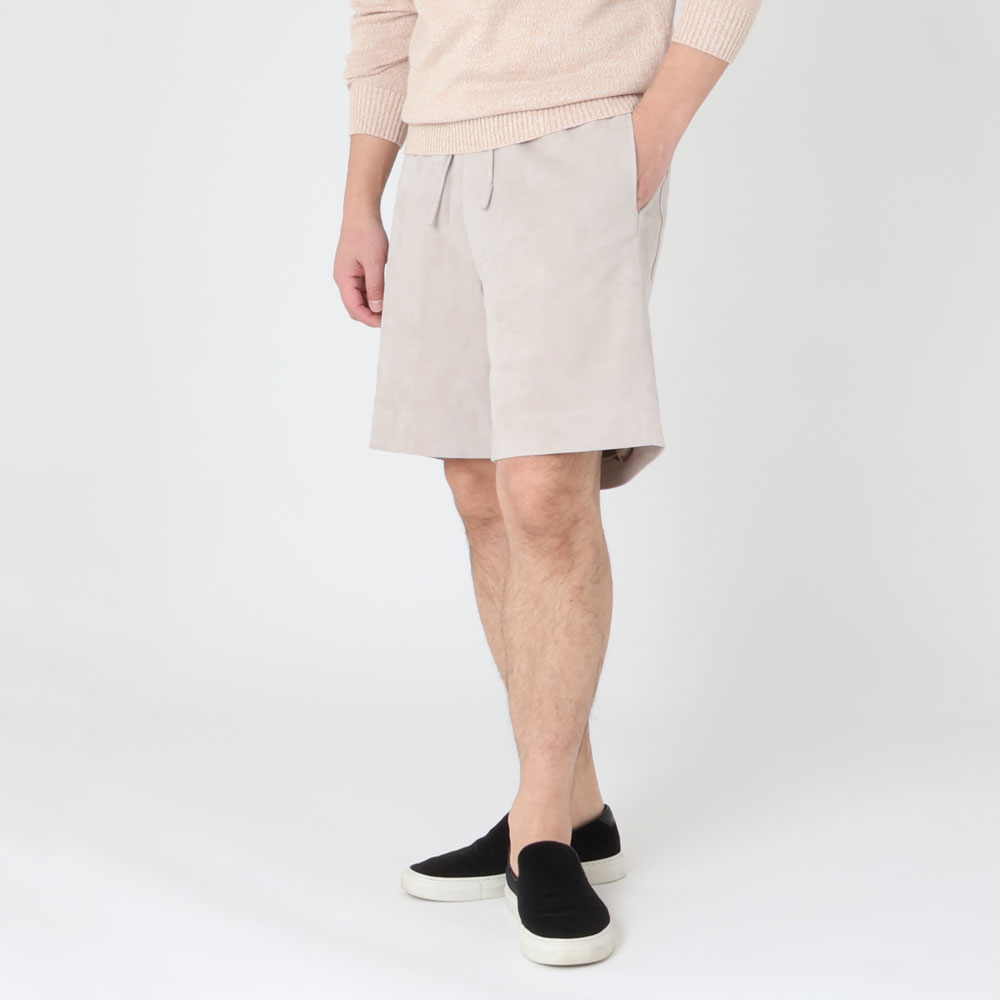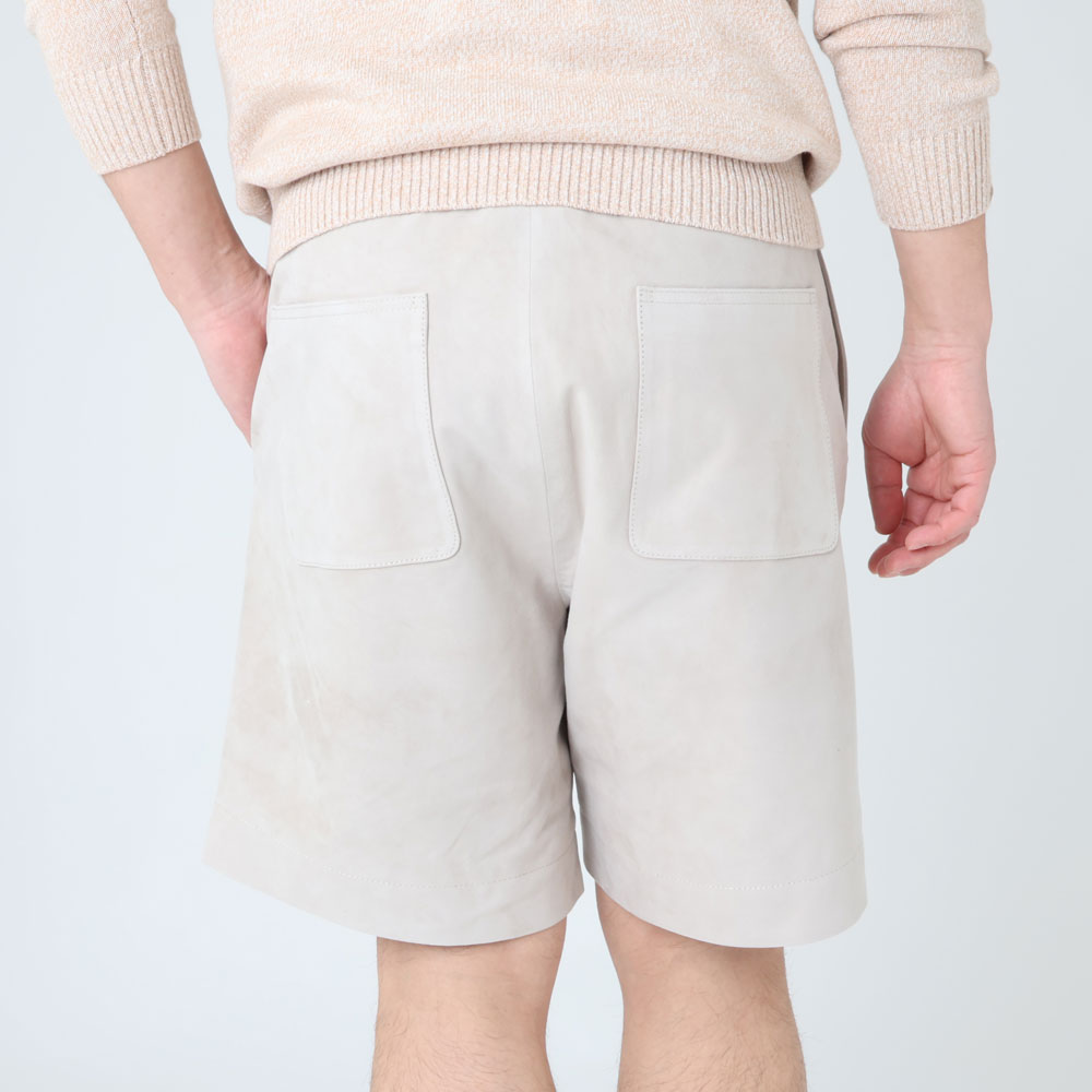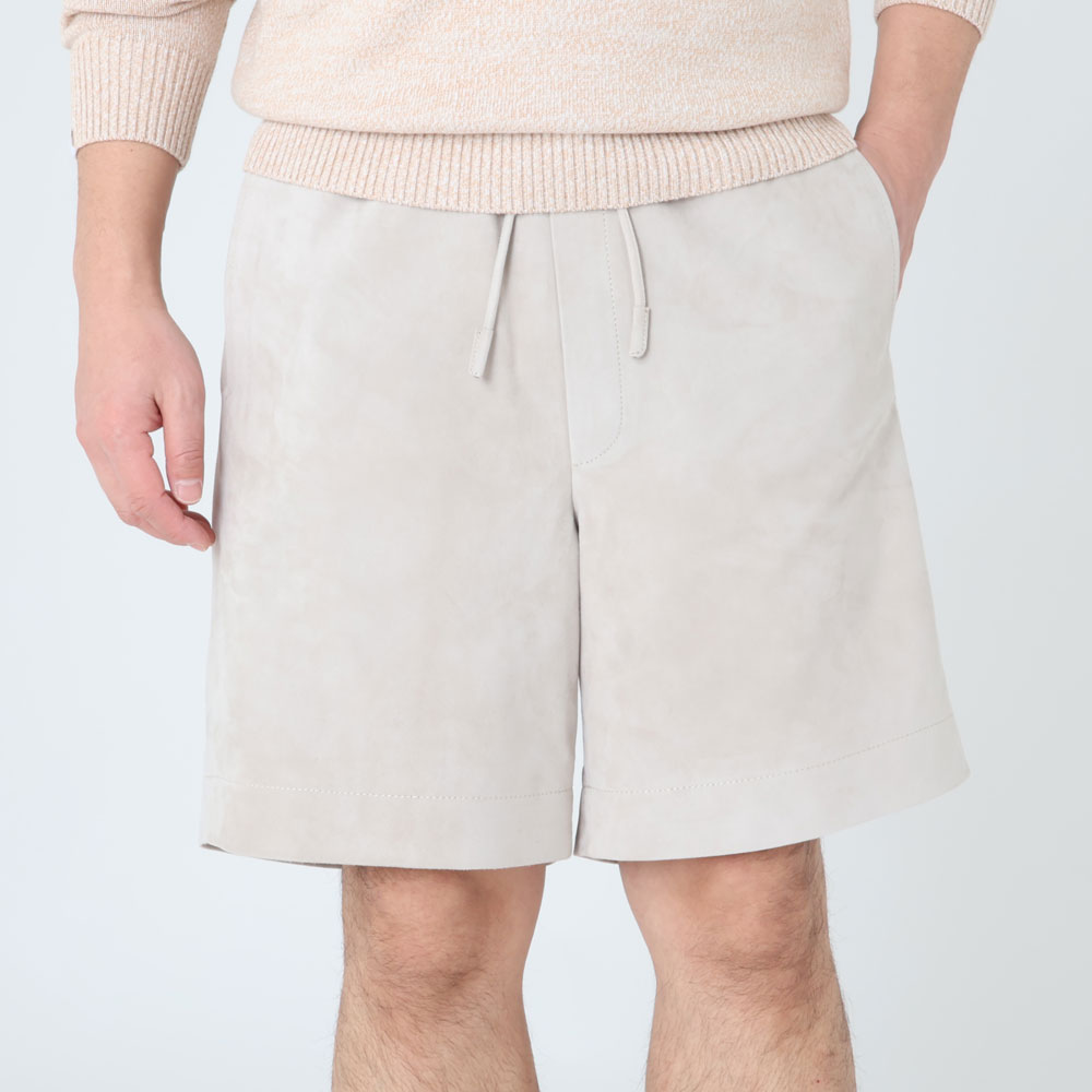 ・デザインはベーシックなリラックスショーツ、それに滑らかでしっとりとしたラムスキンスウェードが載ることで表情が一変し、スタイリッシュでラグジュアリーな仕上がりに。