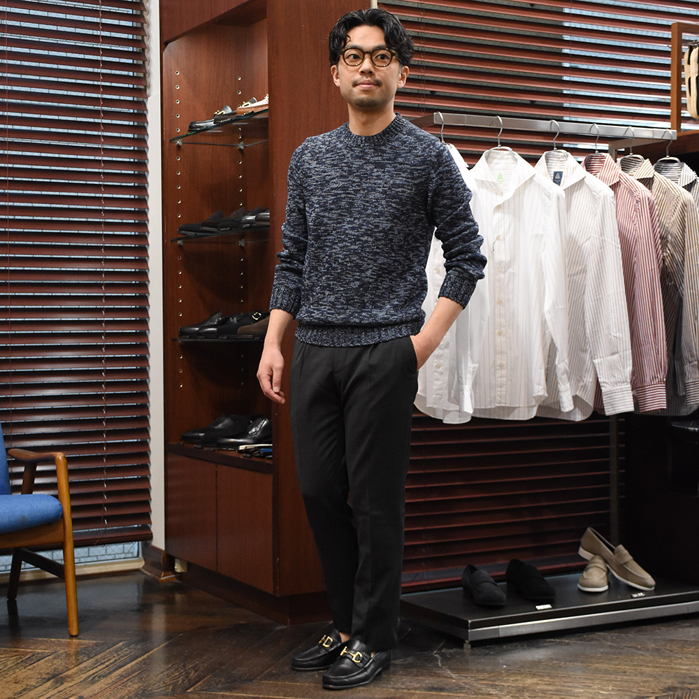 ・”FEDERICO 01 SLIM”は、1アウトプリーツで適度にスッキリとしたテーパードシルエットを描く「GTA(ジーティーアー)」のスリムフィットモデル。サイドポケットはスラッシュ(斜め)になっており、プリーツやフロント持ち出しと相まってシャツなどをタックインすれば腰廻りにポイントが生まれ、ベルトレスでも違和感がありません。