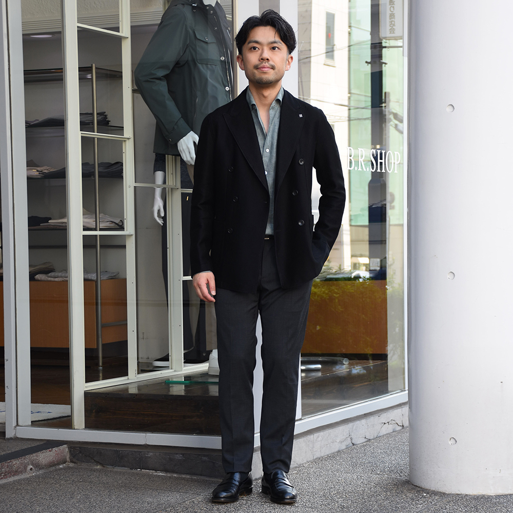 ・ポリエステルとウールがブレンドされた機能素材で織られた生地は、ストレッチ性/シワになりづらい/耐水性を備えており、クセのないプレーンな表情が特徴です。全3色のラインナップ。