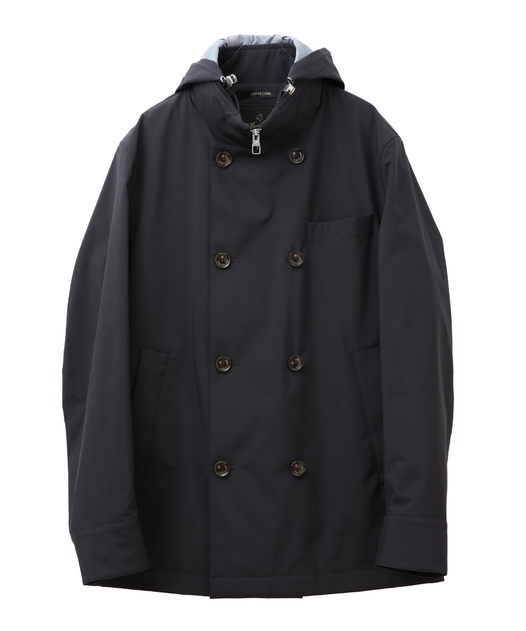 ・超極細糸で織られたナイロンとスウェットがコンビになった「HERNO(ヘルノ)」のジップアップパーカーは、二素材ともに撥水性があり、軽く柔らかな点が特徴。