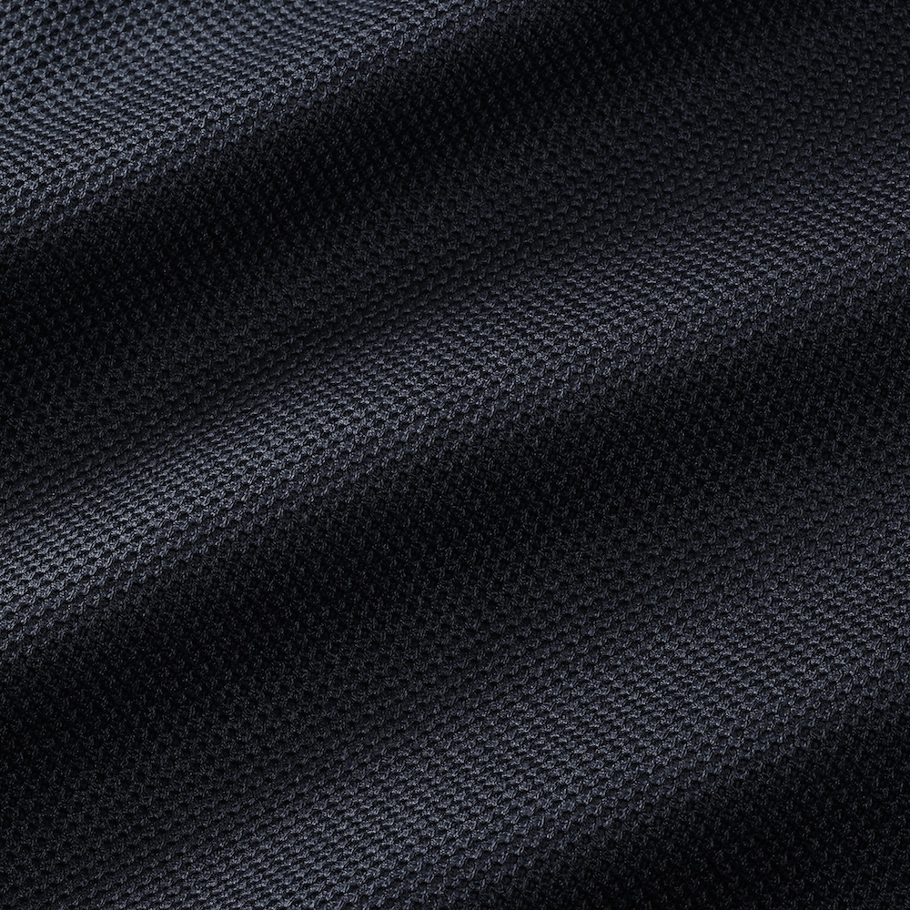 ・生地は先染糸コットン100%で編まれたホップサックジャージー。目付けは245グラムと軽量、かざせば透けるほどのメッシュ調で通気性と伸縮性に優れ、盛夏でも快適に着られます。オフホワイト/チャコールグレーの2色をラインナップ。