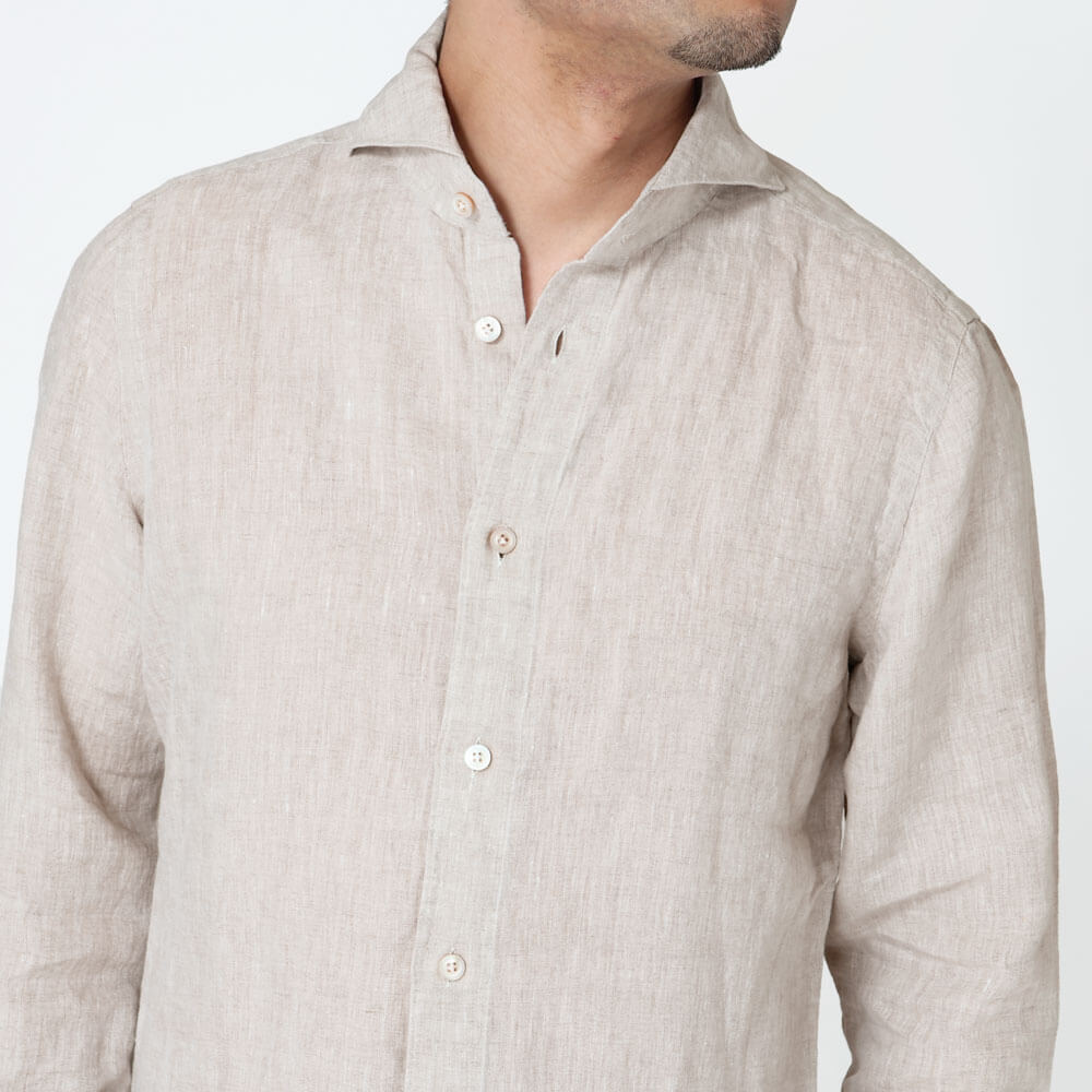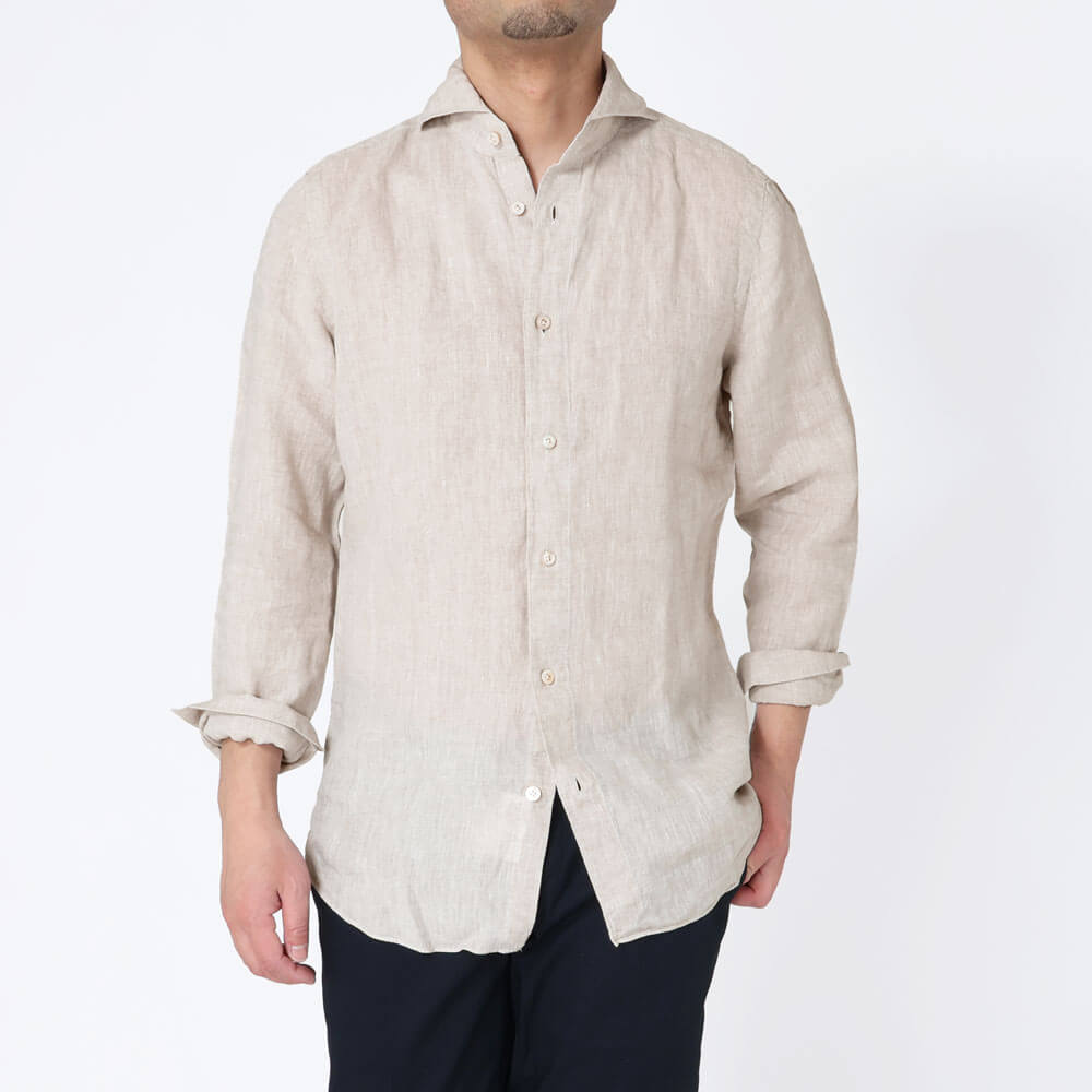 ・「Finamore (フィナモレ)」の端正な作りのドレスシャツは本国イタリアでも高評価を受けています。ご紹介するのは、そのドレスで培ったテクニックを注ぎ込み、3箇所(袖付け・ボタン付け・ガゼット)をハンドで仕上げ、洗いを掛けたカジュアルシャツラインです。