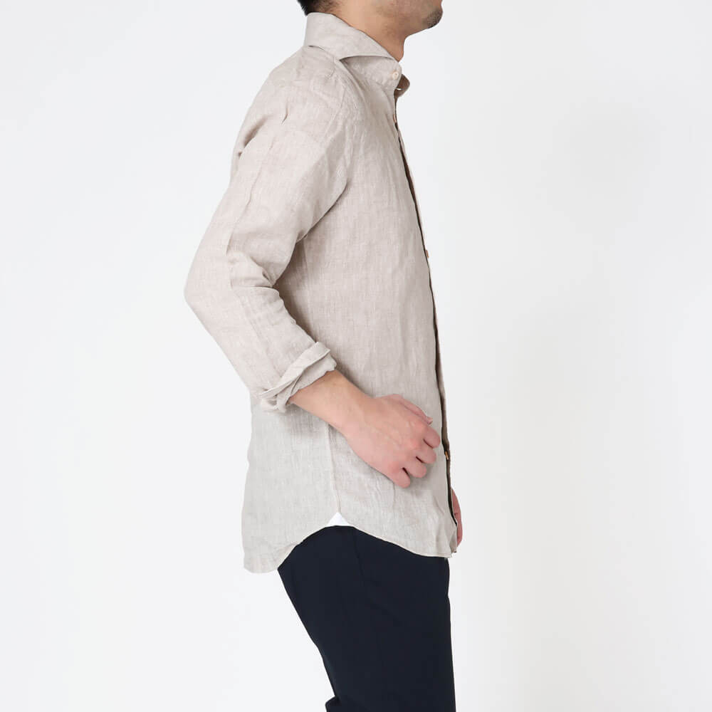 ・狭めな肩幅が特徴的な「Finamore (フィナモレ)」のシャツは、その肩幅からは想像も出来ないほど動き易く、フィット感に長けています。その秘密はいせ込み+前ふりの袖付け。フィット感はありながら、身体にまったくストレスを与えず、極上の着心地です。
