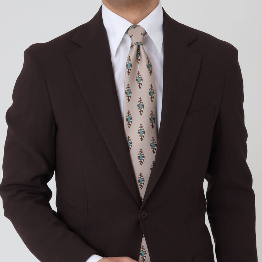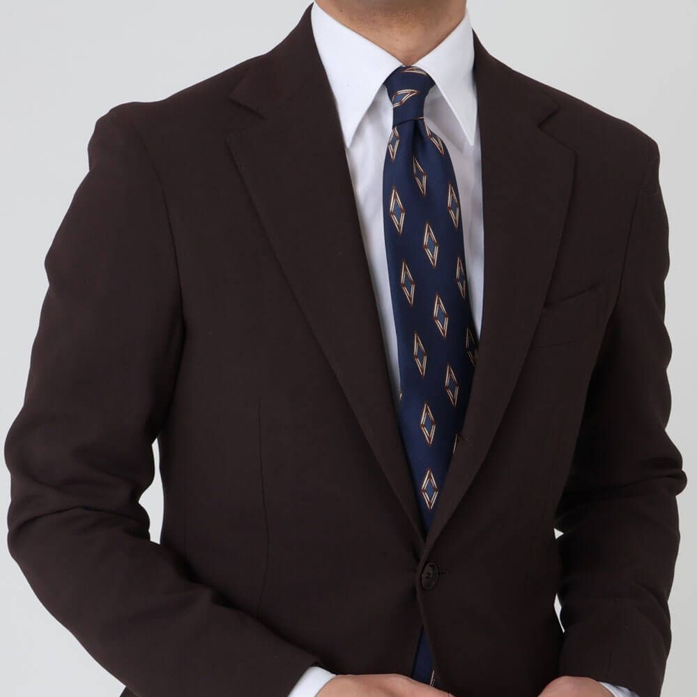 クラシックな柄ながら、規則正しい配置によってモダンなVゾーンに仕上がります。柔らかな生地で首元への負担が少なく、まるでスカーフのようなやさしいつけ心地でした。
