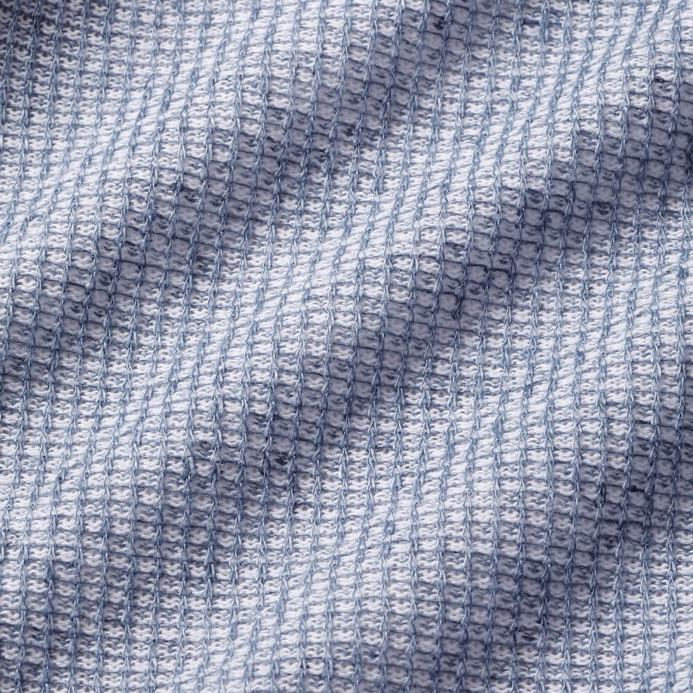 ジャージー生地ゆえに伸縮性は抜群の上、コットンに麻をブレンドしたメッシュ編み調なので通気性が良く、快適かつリラックスして着ていただけます。目付けは230グラムです。1色のラインナップ。