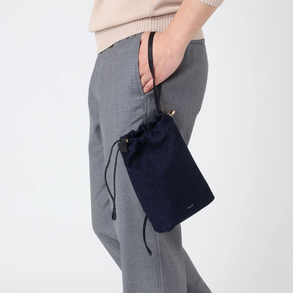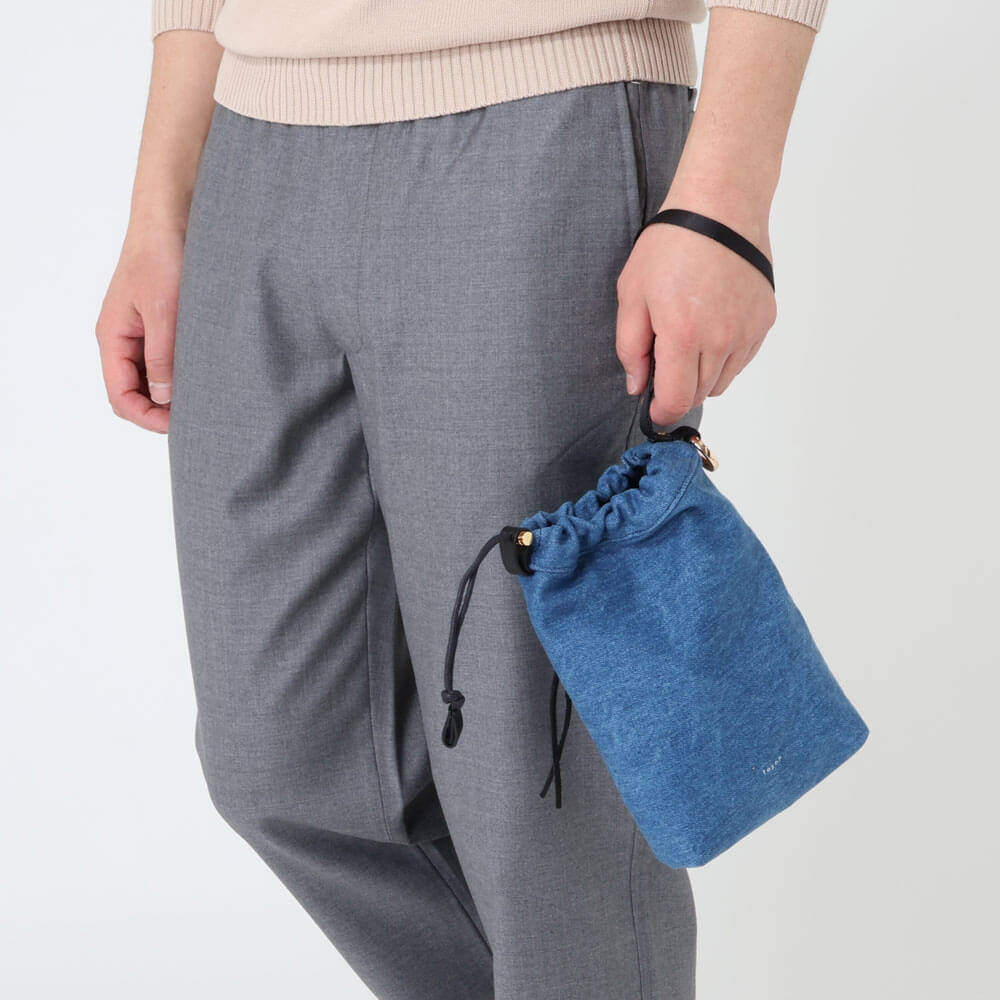 テクネ / MINI DRAWSTRING POUCH/WASHED DENIM/B11-01125-F