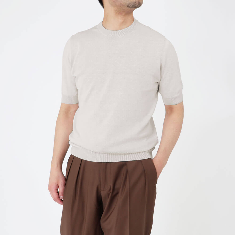 ロレンツォーニ / コットン&リネン クルーネック ニットT/33064501 L