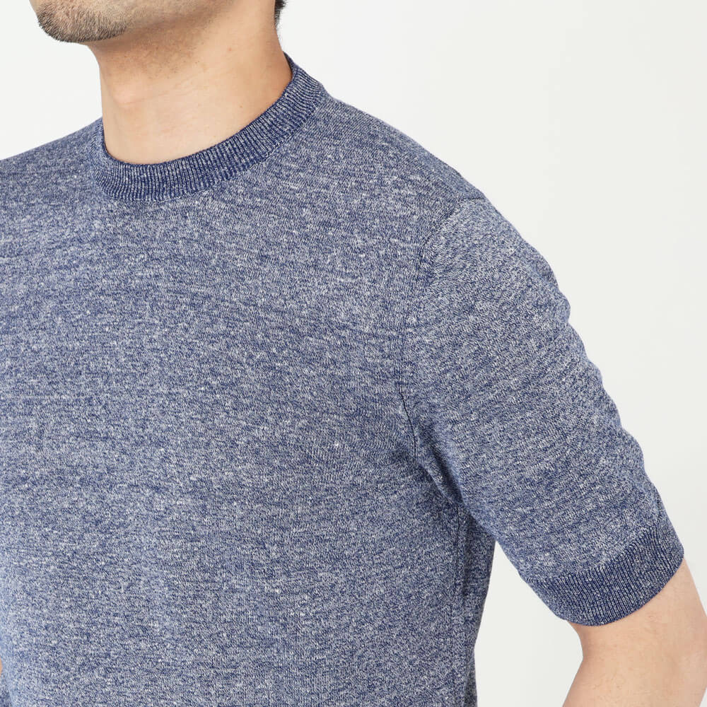 ・袖と裾にリブを配し、シルエットにメリハリをつけたコットン&リネンのニットTです。