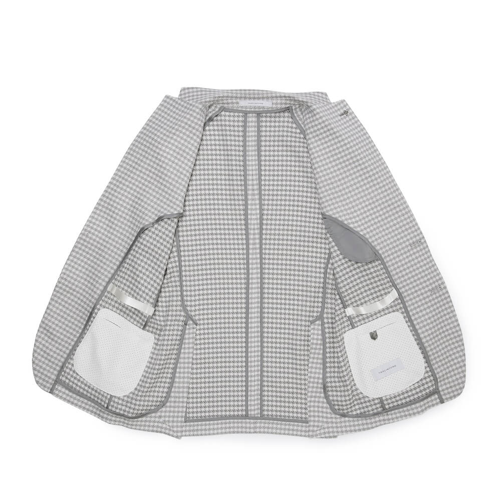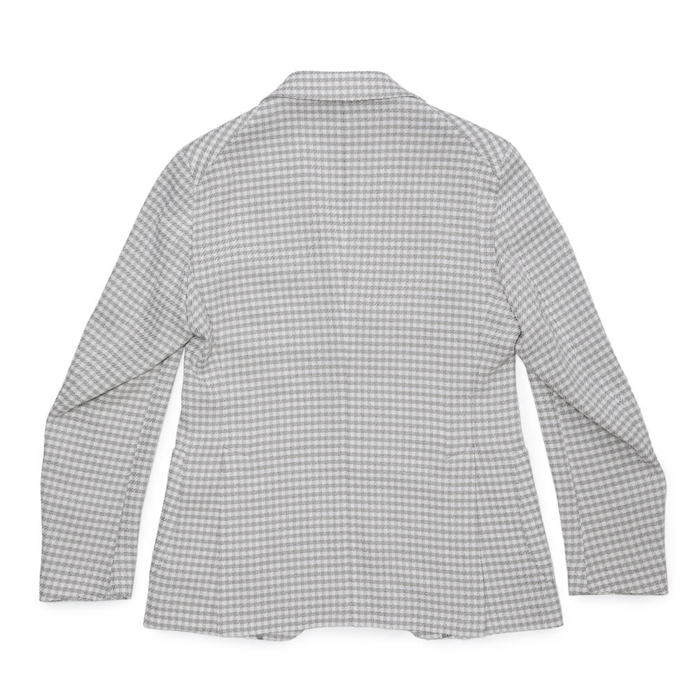 ・ホワイトとグレーを巧みに馴染ませたチェックは、爽やかさと落ち着きを兼ね備え、取り入れやすい柄ジャケです。