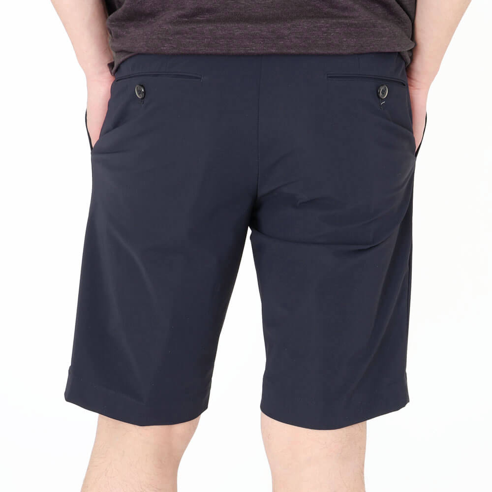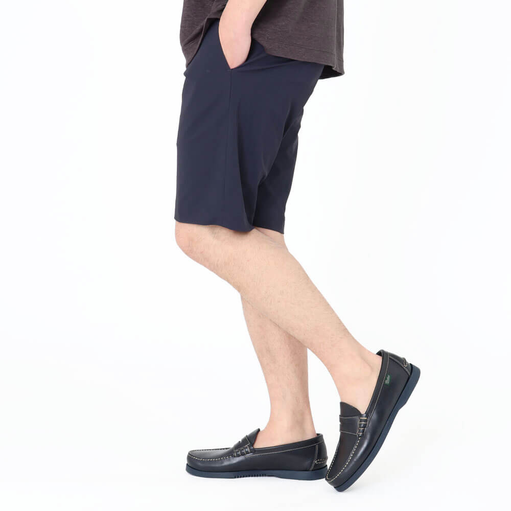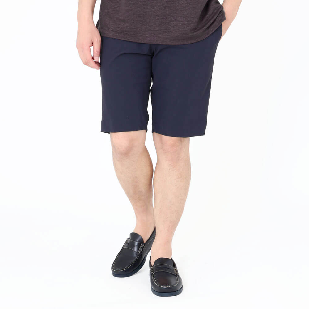 ・スソは気兼ねなく水を通すケアの出来るタタキ仕上げ。スッキリとしたシルエットと膝上くらいの丈とのバランスが秀逸。街中でもリゾートでもスタイリッシュなショートパンツスタイルを演出します。