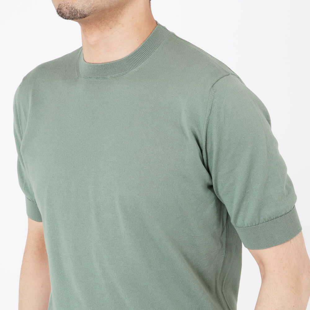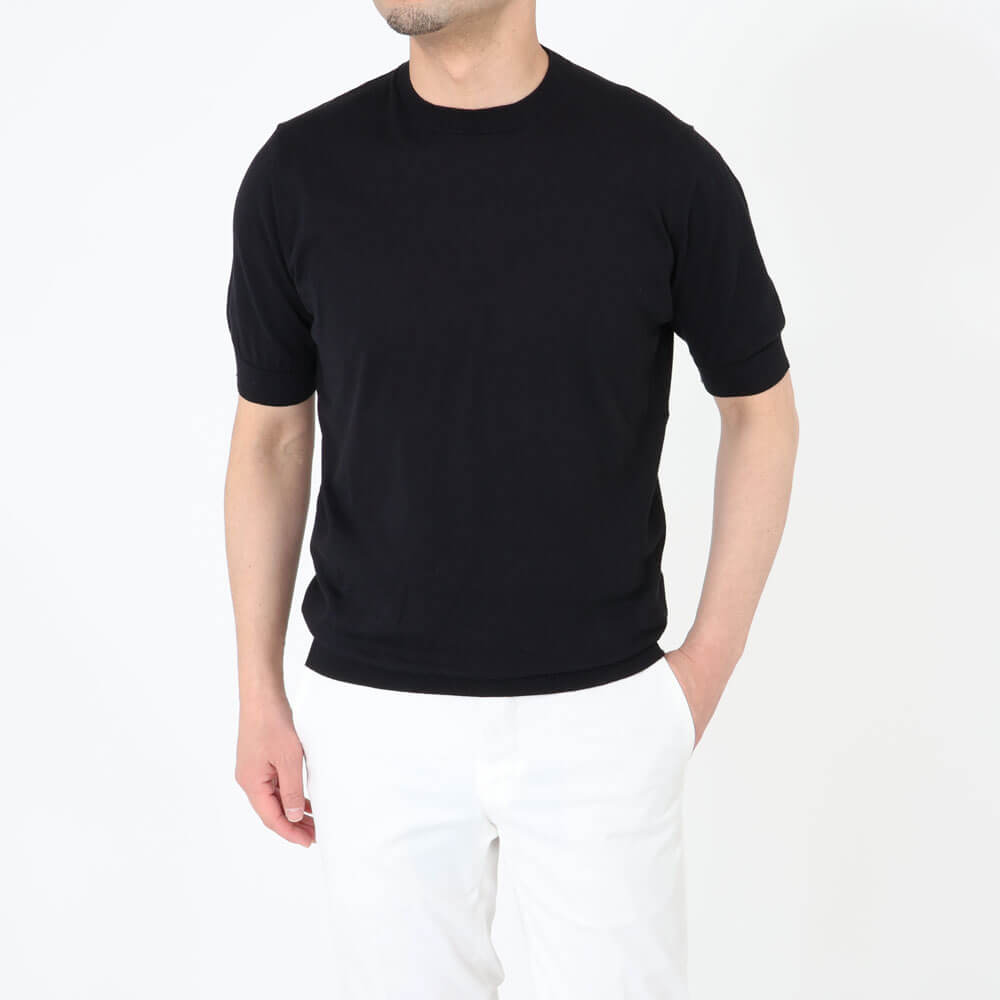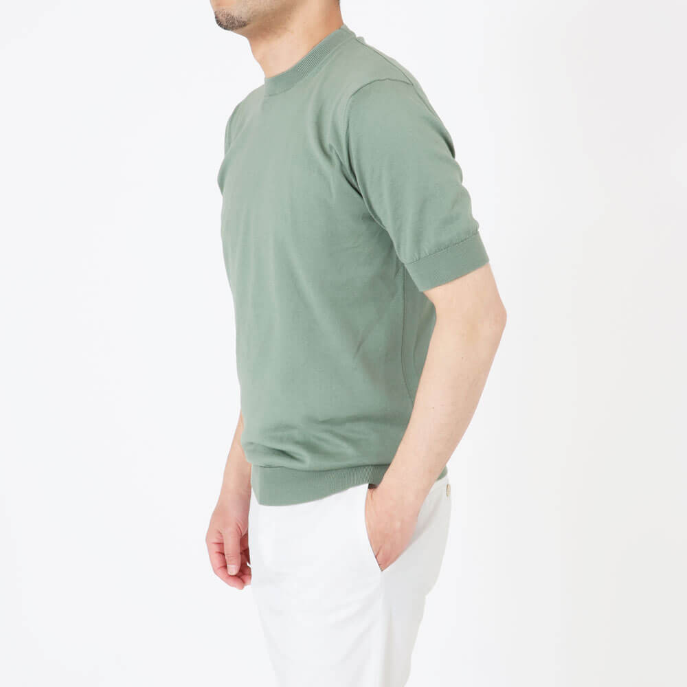 ・18ゲージの天竺編みで仕上げられており、ギザコットンがもたらす滑らかな質感が贅沢な一着。