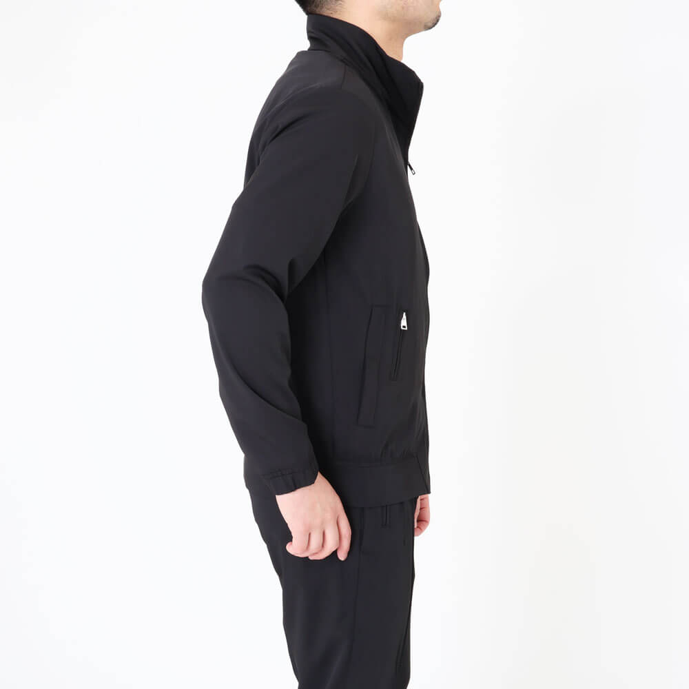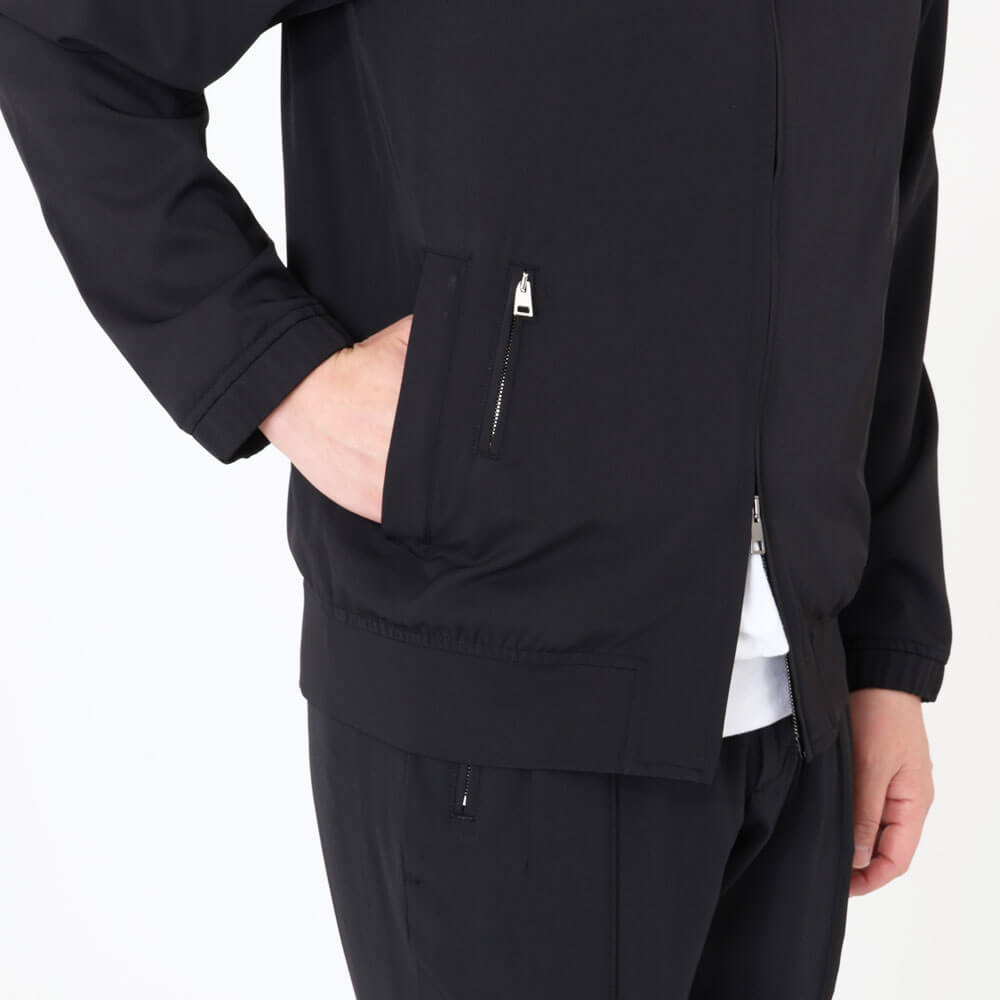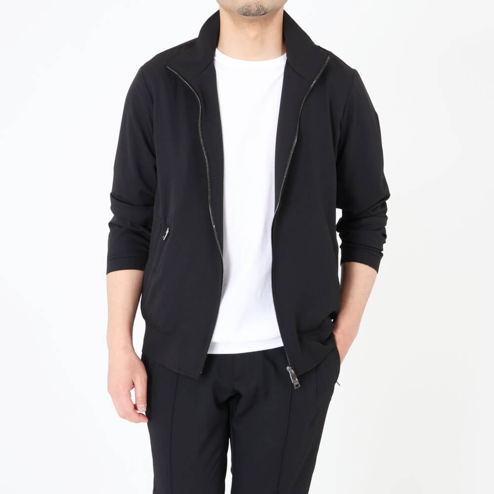 ・スポーティなデザインではあるものの、大人でも十分に着られる程よくリラックス感ある洗練されたシルエット。ジップをトップまで上げた際に首回りにゆとりが生まれ、抜け感が演出されるのがこのトラックジャケットの特徴です。シルエットにニュアンスが付けられるダブルジップアップ仕様。
