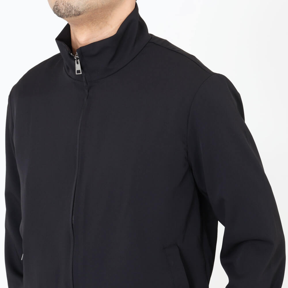 スマートなシルエットに加え、程よく高さのある襟がオトナの雰囲気を演出します。襟周りには適度なゆとりがあり、首元に窮屈さが出ず抜け感のある印象です。ZIP付きポケットはデザインのアクセントでありながら、中身が落ちにくい実用性も兼備。シワになりにくく非常に軽いため、日常使いから長時間の移動まで安心して着られます。サイズ44を着用し、ちょうど良いサイズ感でした。