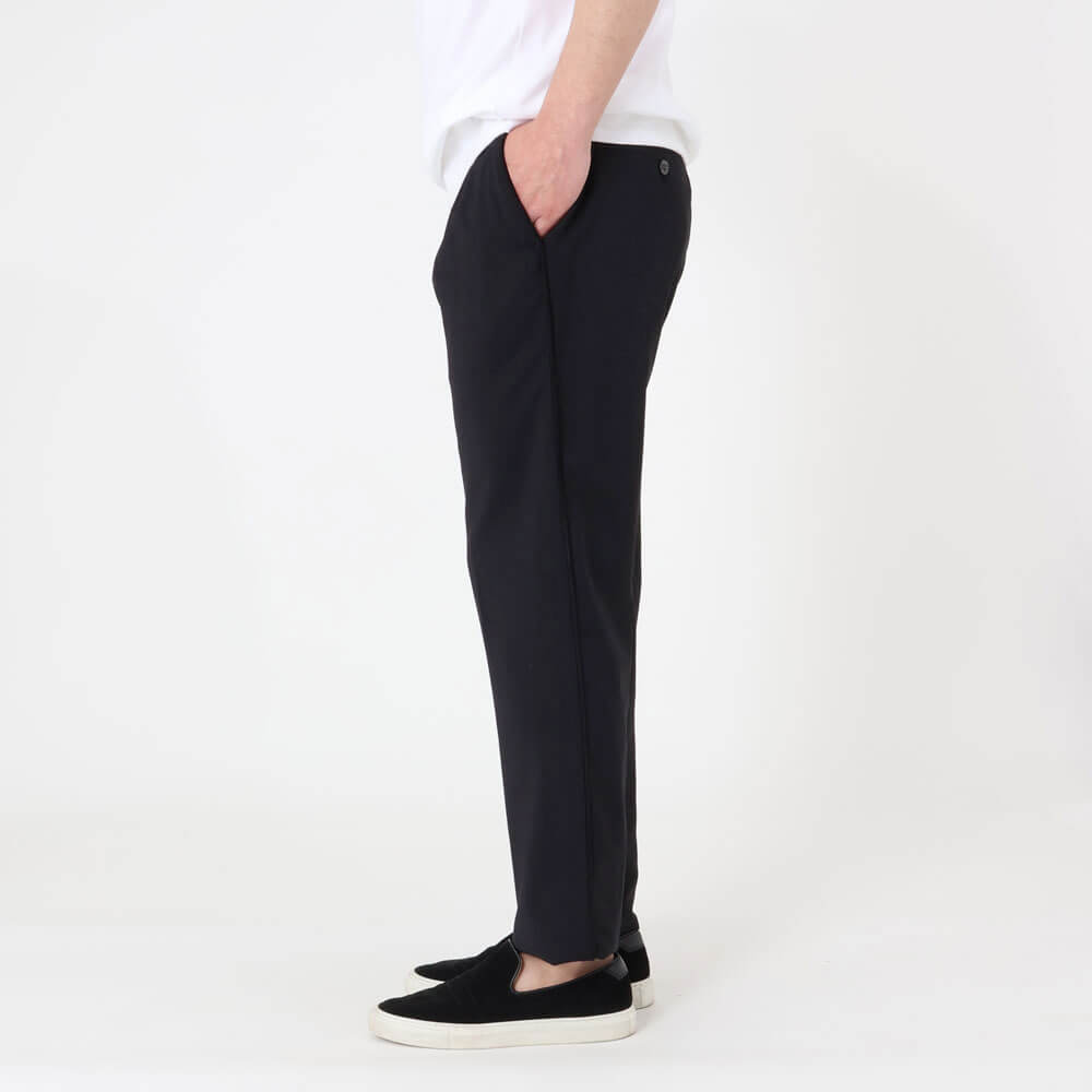 ・縦横のストレッチ性も備え、ストレスフリーな穿き心地が叶うハイブリッドな生地。ブラック1色のラインナップです。同じ生地を使ったニューモデルのパーカー"BONSI"も今後入荷します。