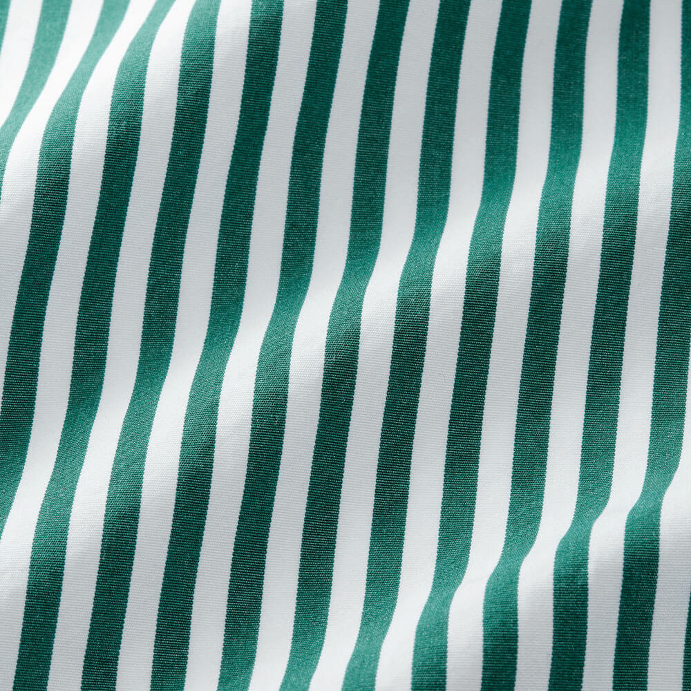 ・平織りの滑らかな肌触りが心地良く、適度な厚みがあるため透け感を気にせず、オールシーズン着用頂けます。生地感が近しい異なる配色のロンドンストライプもラインナップ。