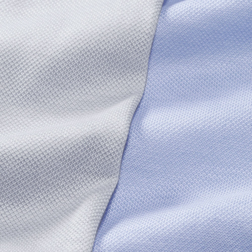・薄手で微光択を備えた生地のため、堅苦しくないビジネスシーンでも着られる清潔感のあるライトグレーとサックスの2色をラインナップ。