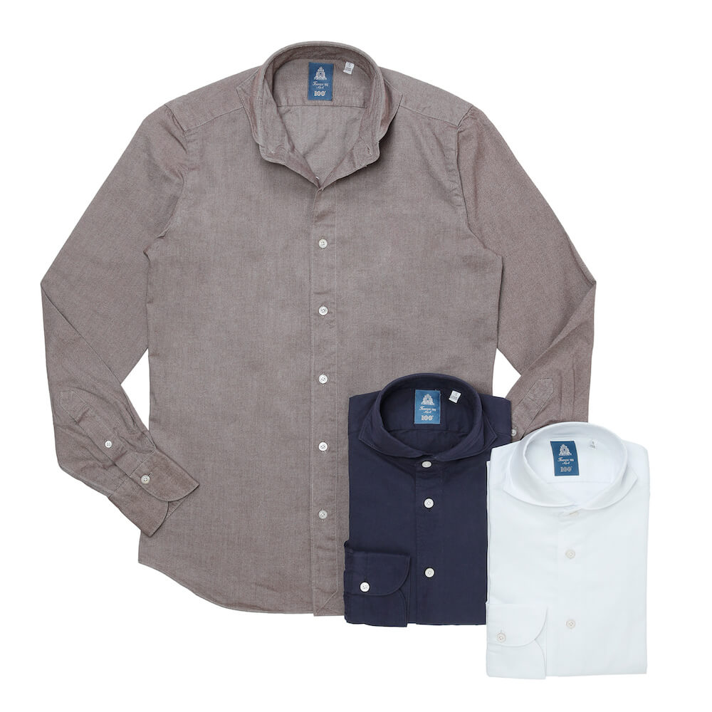 フィナモレ / コットン&カシミア ツイル カッタウェイカラー シャツ/C0286、A5094