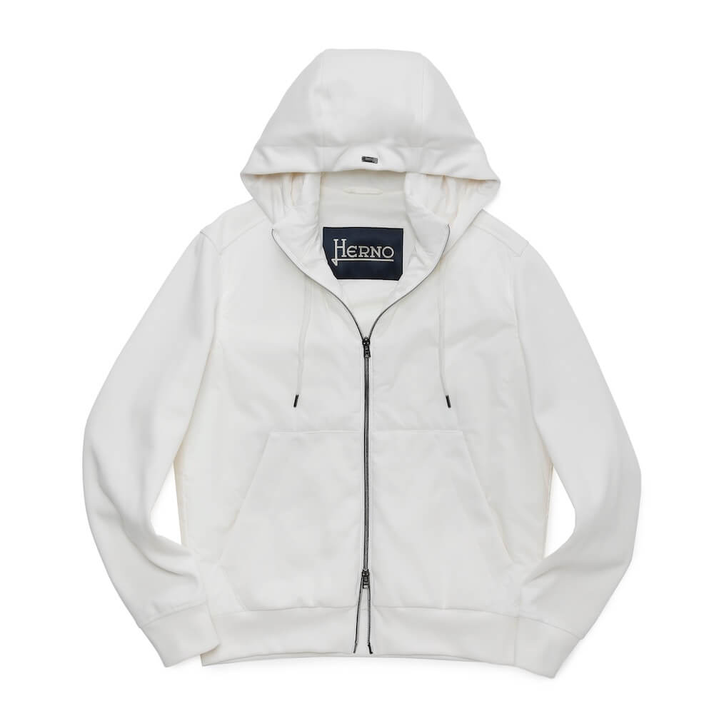 「HERNO(ヘルノ)」から高貴なムード漂うシルク&カシミアダウンジャケットを軸にコーディネートを組みました。 リラックス感あるパンツとスニーカーを合わせたラグスポスタイルですが、全体の配色をモノトーン+グレージュで合わせる事で洗練感も増し、スタイリングをより、格上げしてくれます。