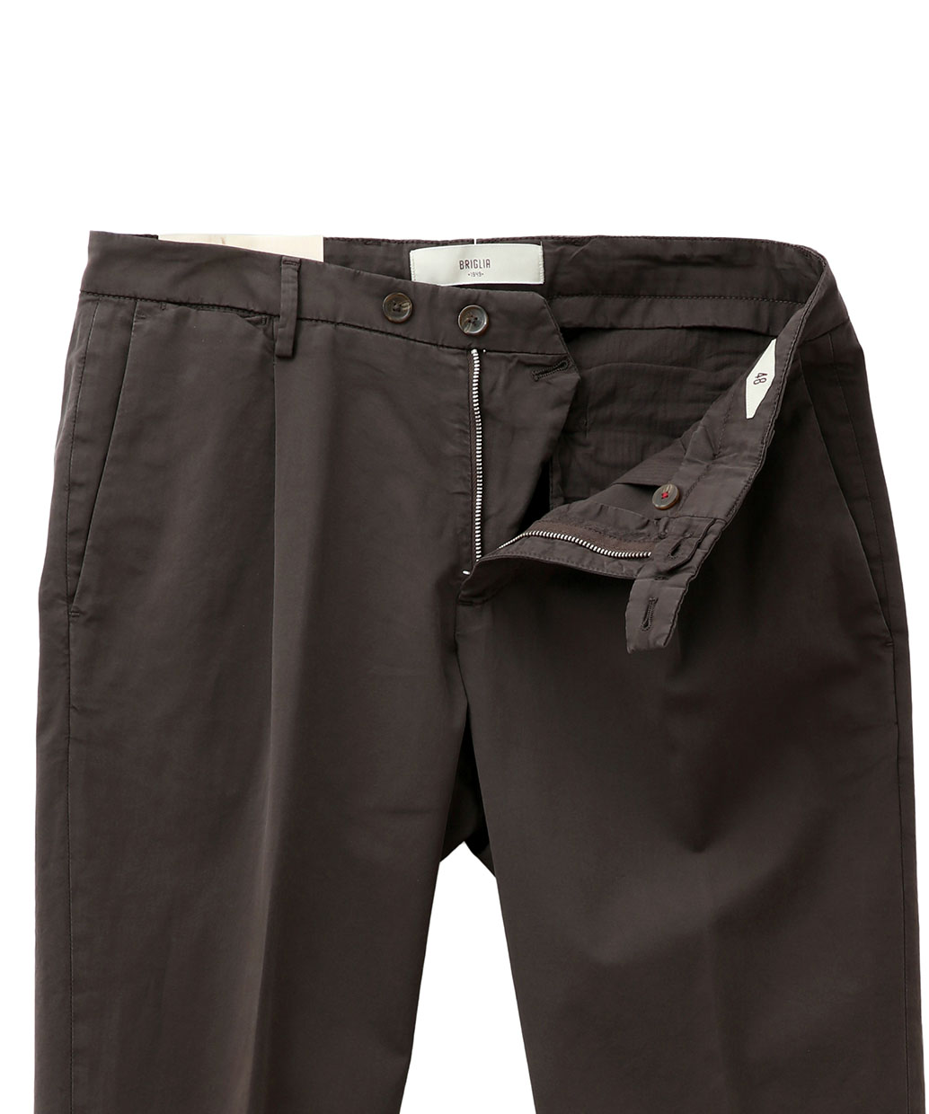 BRIGLIA 1949 BG07 コットンストレッチ ワンプリーツ テーパードパンツ