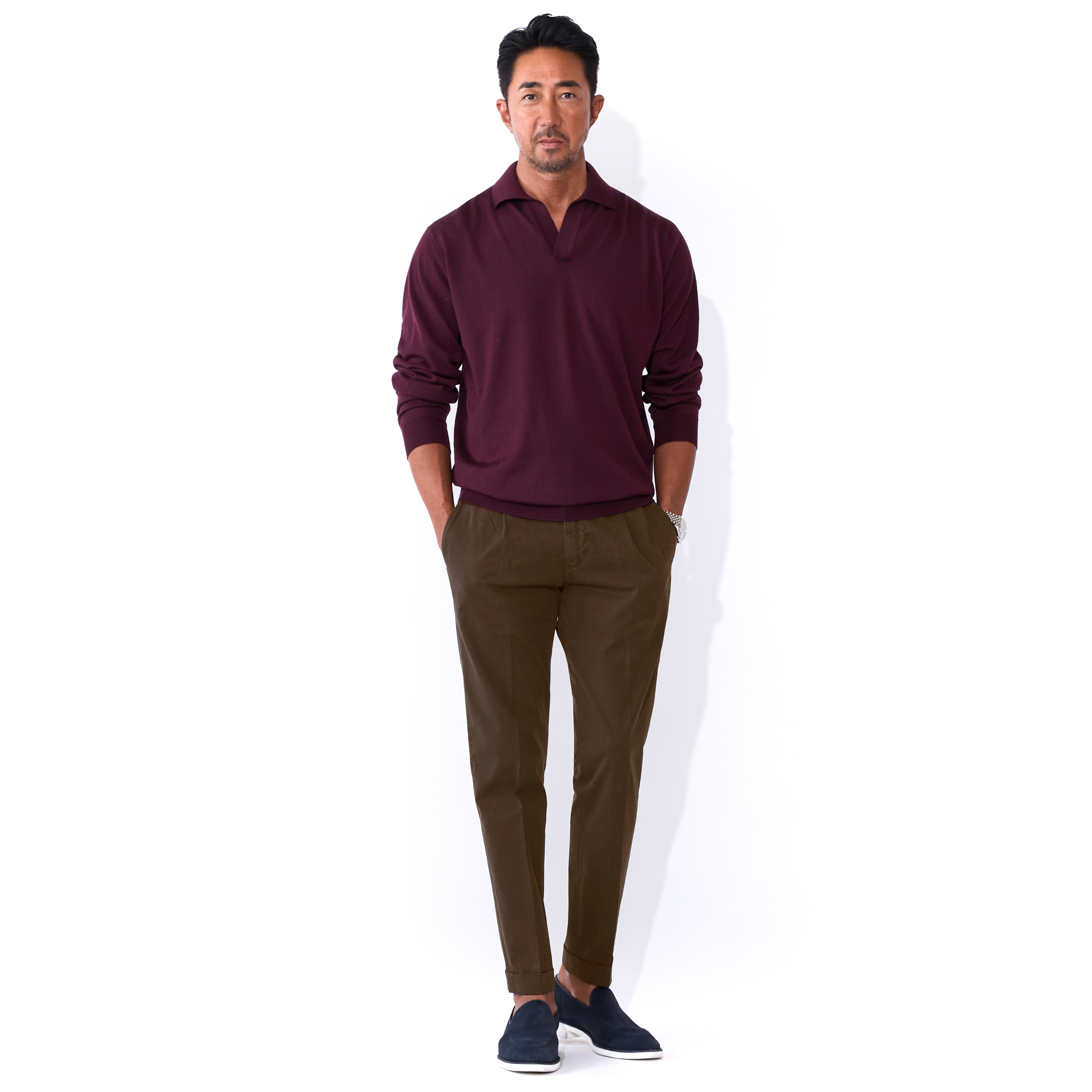 すっきりとしたシルエットながら、ワンプリーツによりフロントに程よいゆとりを持たせ、快適な穿き心地に。裾に向かって自然に細くなるスリムテーパードが脚のラインをきれいに見せつつ、ストレッチ性のある生地が動きやすさを支えます。