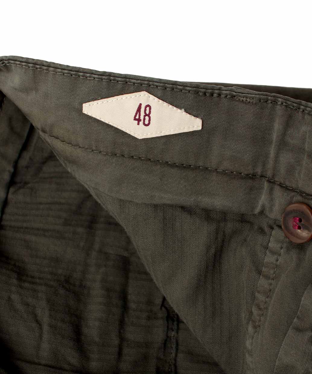 片玉縁ポケットとコインポケットを配したスラックスライクな表情に、BRIGLIA刻印のオリジナルボタンがさりげないクラス感を添えます。