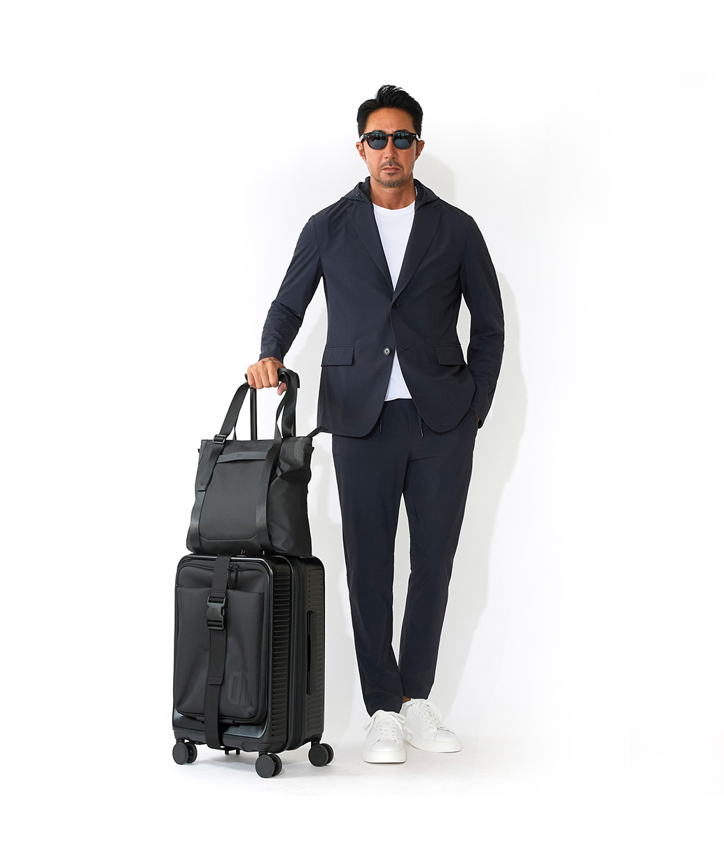 ストレッチナイロン生地を用い、スポーティな快適さを備えながらも、端正にまとまる表情で都会的なスタイルに馴染む一本です。