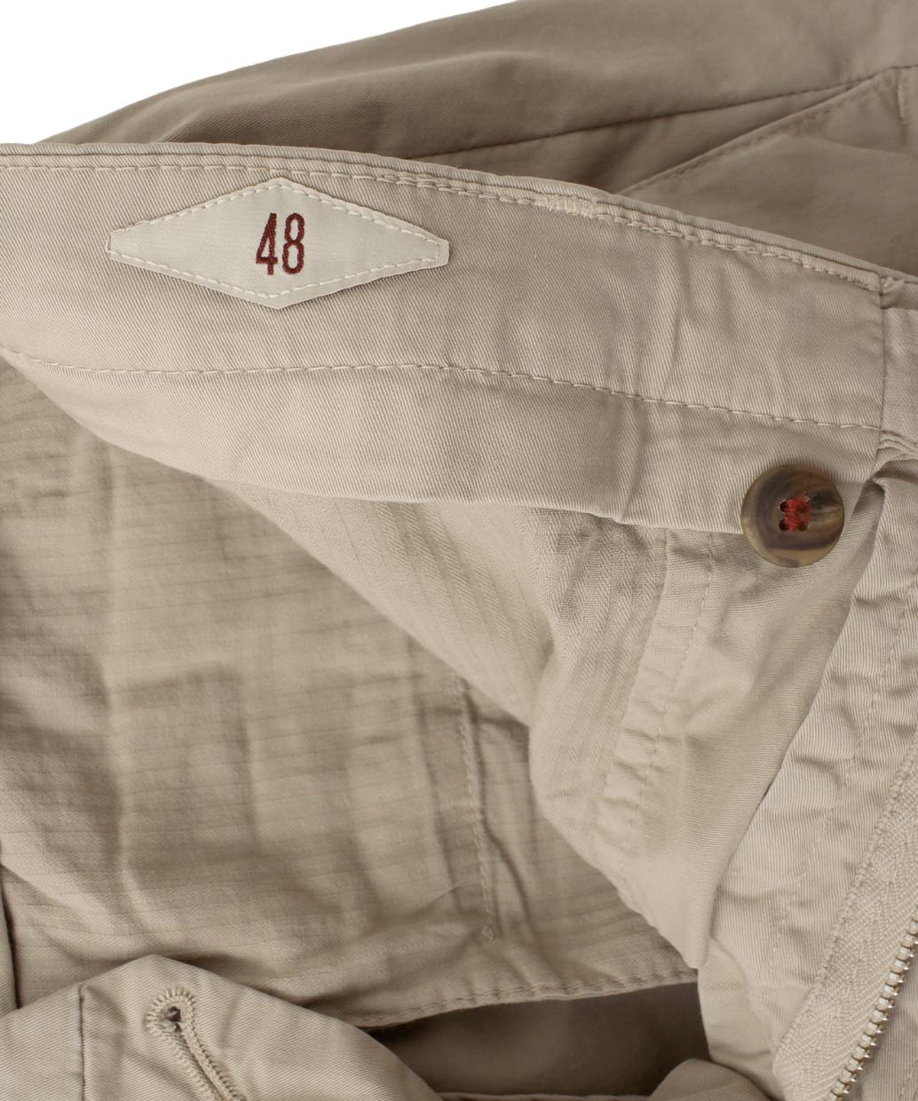 片玉縁ポケットとコインポケットを配したスラックスライクな表情に、BRIGLIA刻印のオリジナルボタンがさりげないクラス感を添えます。