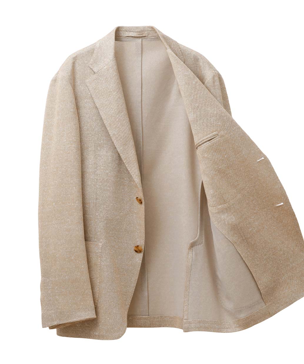 軽やかさと上質感を兼ね備えたリネンコットンのニットジャケット