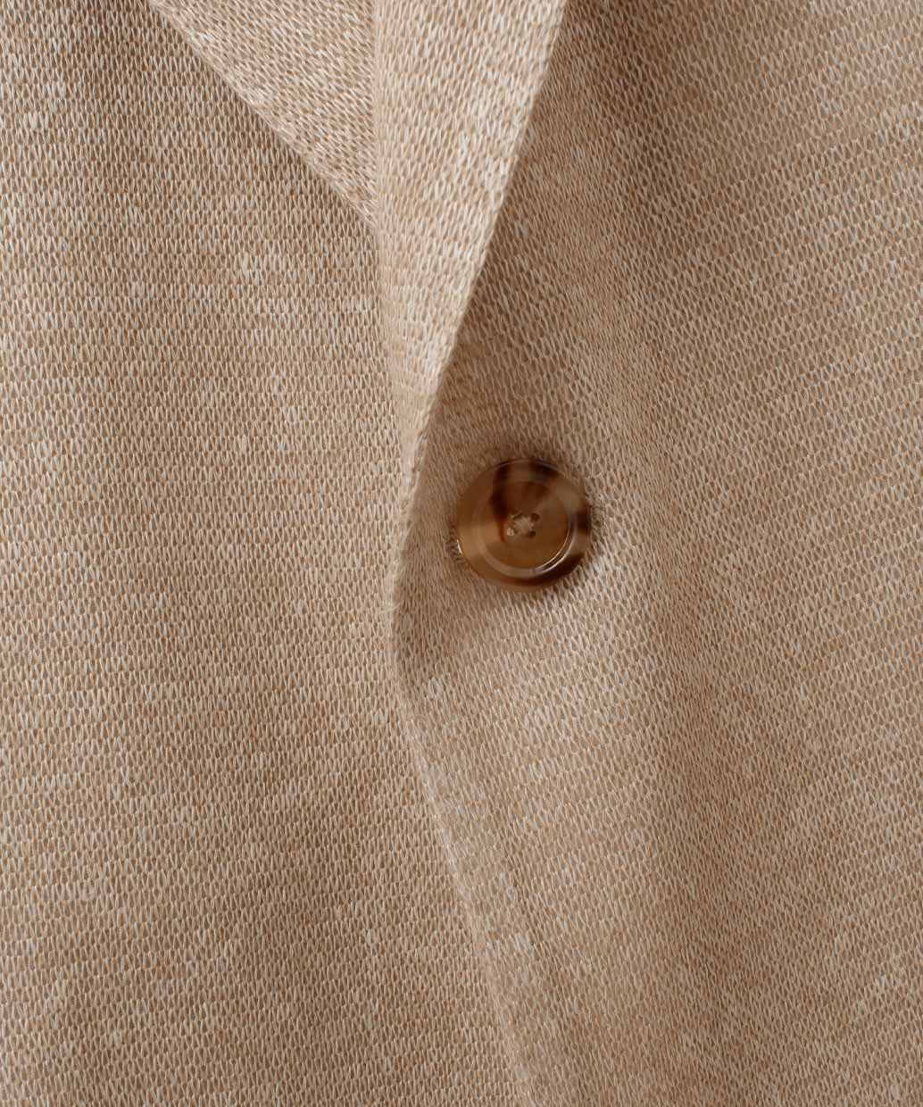 リネンをベースにコットンをブレンドした糸で編み上げた、薄手で柔らかなニット生地のジャケット。リネン特有の清涼感にコットンのしなやかさが加わり、軽くさらりとした着心地に仕上がっています。ニットならではの伸縮性と優れた通気性が、春夏シーズンでも快適な着用感を実現。さらに奥行きのあるメランジ調の表情が、シンプルなデザインに上質なニュアンスを添えます。きれいめなスタイリングはもちろん、Tシャツやデニムと合わせたカジュアルな装いでも大人の品格をキープしてくれる、リラックス感とラグジュアリーさを兼ね備えたニットジャケットです。