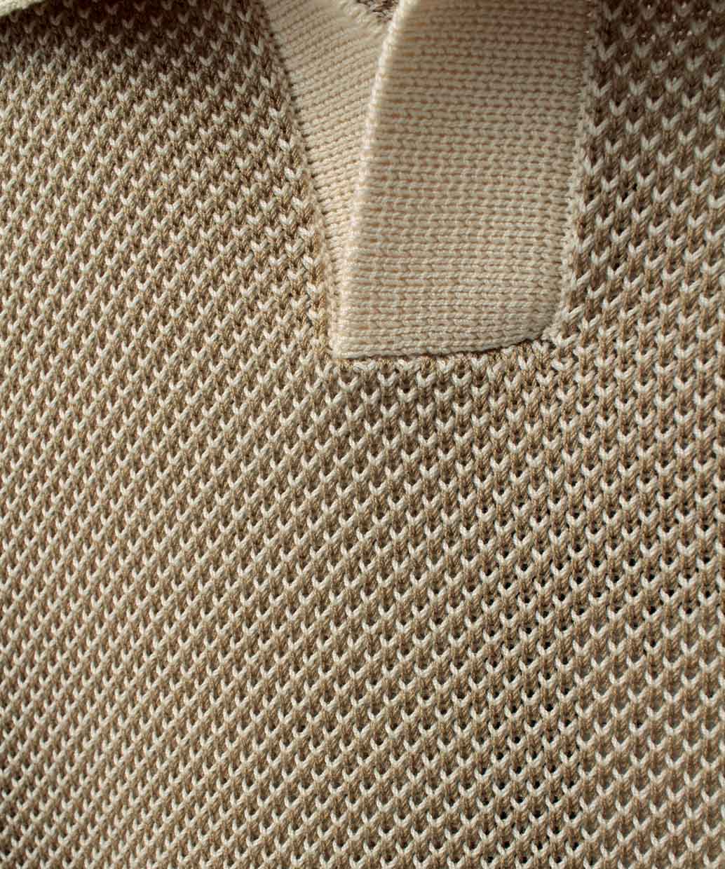 上質なコットン100%の糸で編み上げたスキッパーデザインのポロセーター。身頃には立体的でザックリとした通気性の良い編地を採用し、軽やかで清涼感のある着心地を実現しています。襟まわりや袖口などのニット部分は編地を切り替えることで質感に変化を持たせ、シンプルな中にもデザインのコントラストを効かせた仕上がりに。程よい抜け感のあるスキッパーデザインが大人のリラックスした雰囲気を演出し、春夏のスタイリングに軽快さを添えてくれる一着です。