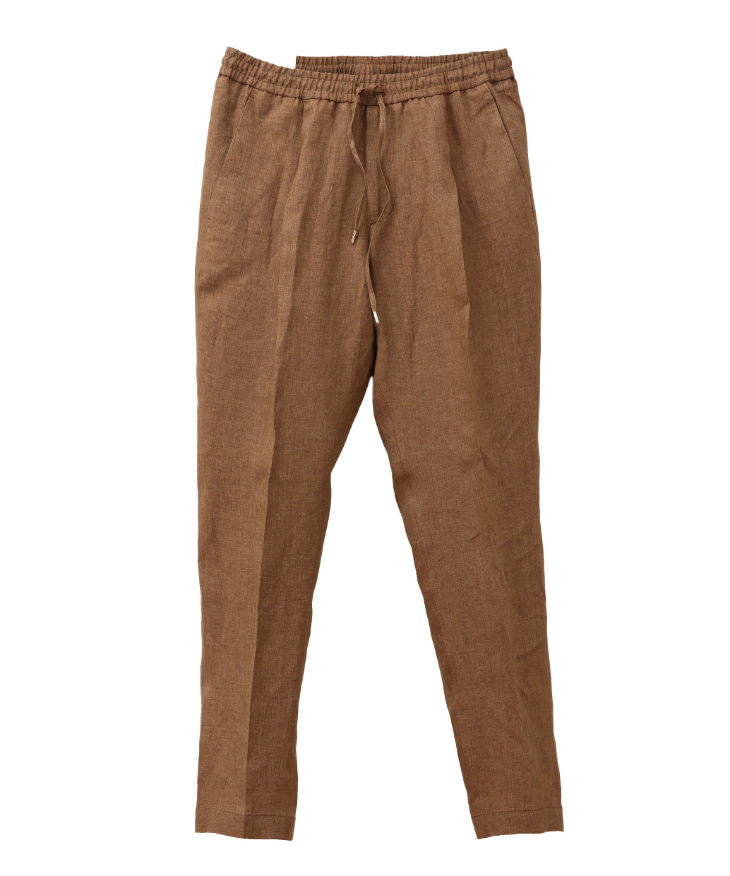 発色の美しいリネン素材で仕立てた、スマートなスタイリングが楽しめるイージーパンツ。リネン特有のナチュラルな風合いと軽やかな質感が、季節感のある爽やかな印象を演出します。通気性と吸湿性に優れた素材のため、気温の高い真夏でも快適な穿き心地をキープ。リラックス感のあるイージー仕様でありながら、すっきりとしたシルエットが大人のカジュアルスタイルを上品にまとめてくれる一本です。
