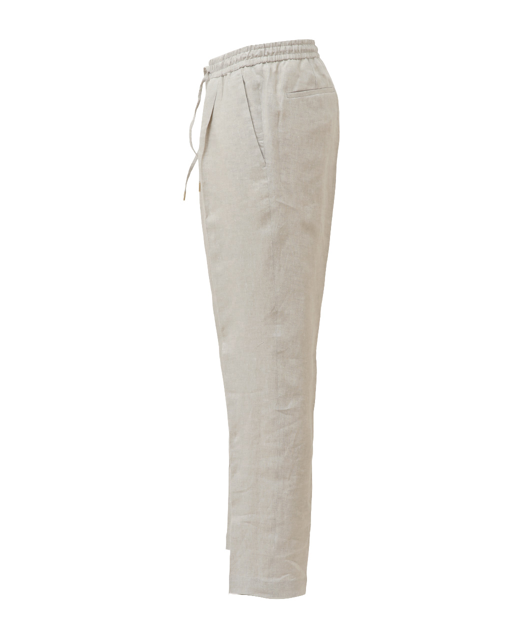 発色の美しいリネン素材で仕立てた、スマートなスタイリングが楽しめるイージーパンツ。リネン特有のナチュラルな風合いと軽やかな質感が、季節感のある爽やかな印象を演出します。通気性と吸湿性に優れた素材のため、気温の高い真夏でも快適な穿き心地をキープ。リラックス感のあるイージー仕様でありながら、すっきりとしたシルエットが大人のカジュアルスタイルを上品にまとめてくれる一本です。