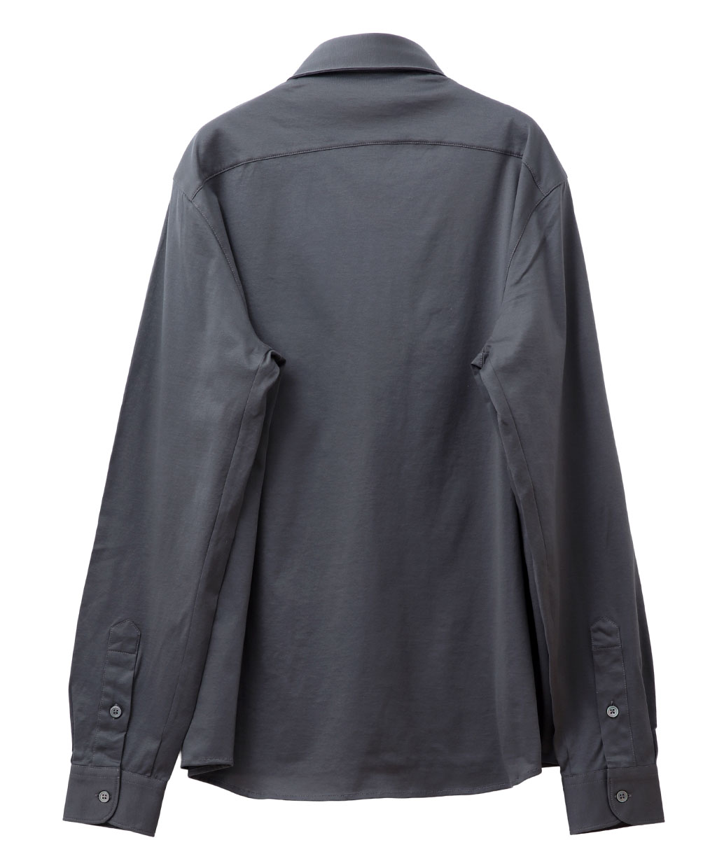 上質なスーピマコットン100%のジャージー生地で仕立てた長袖レギュラーカラーシャツ。柔らかさと程よいハリを併せ持つ素材が、快適な伸縮性としなやかな肌当たりを生み出し、ストレスのない着心地を実現します。