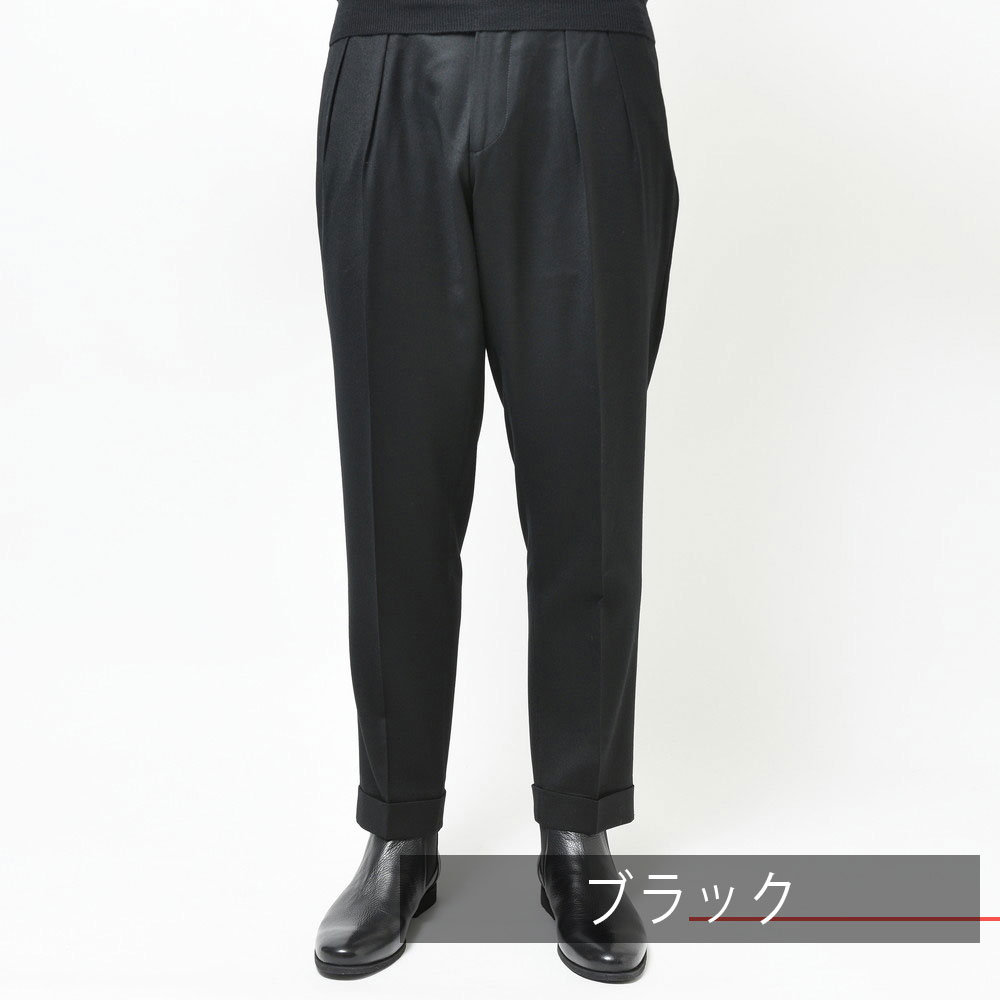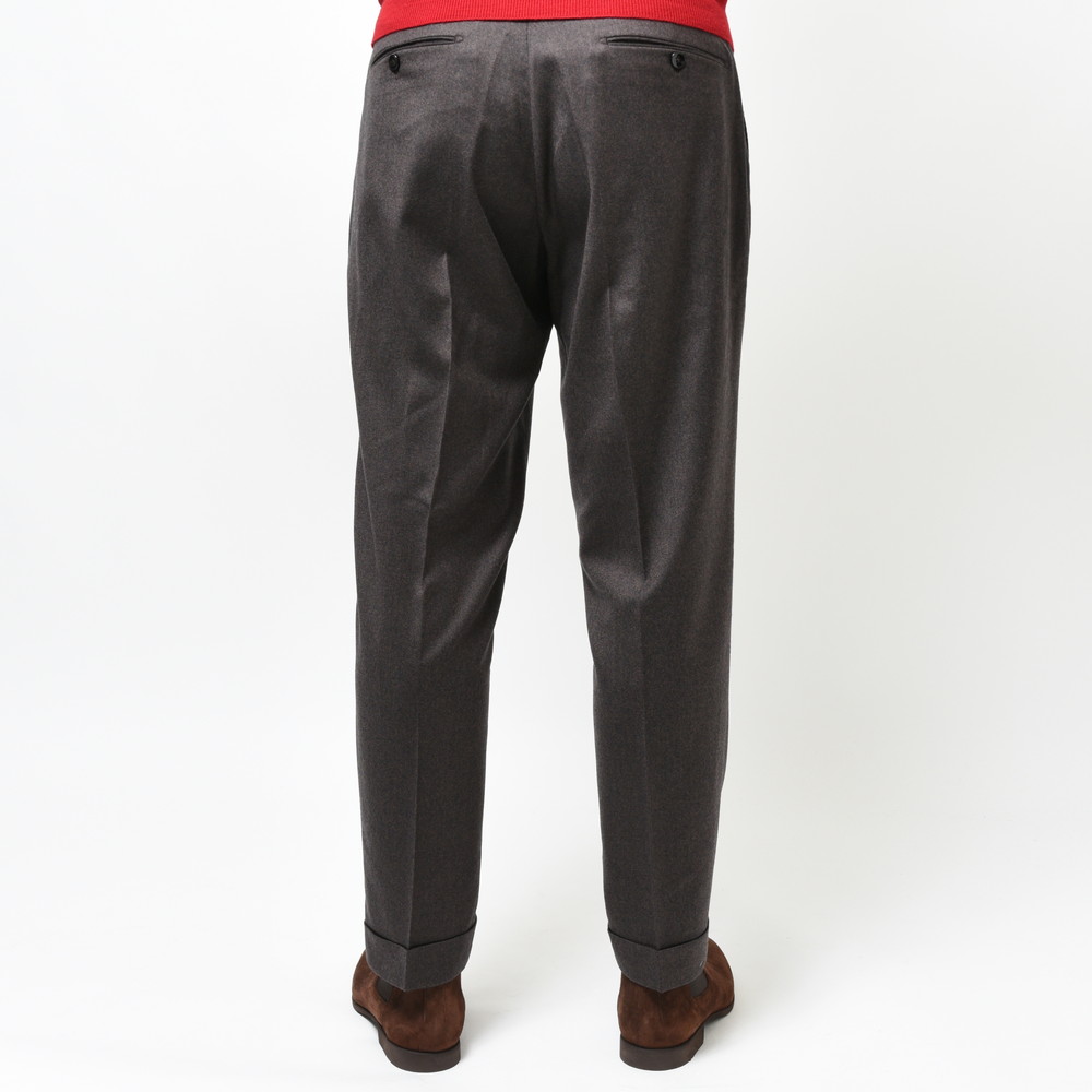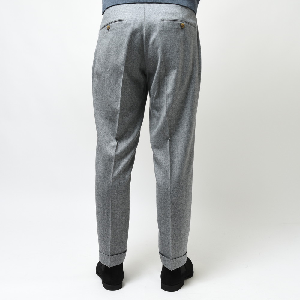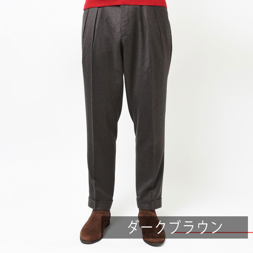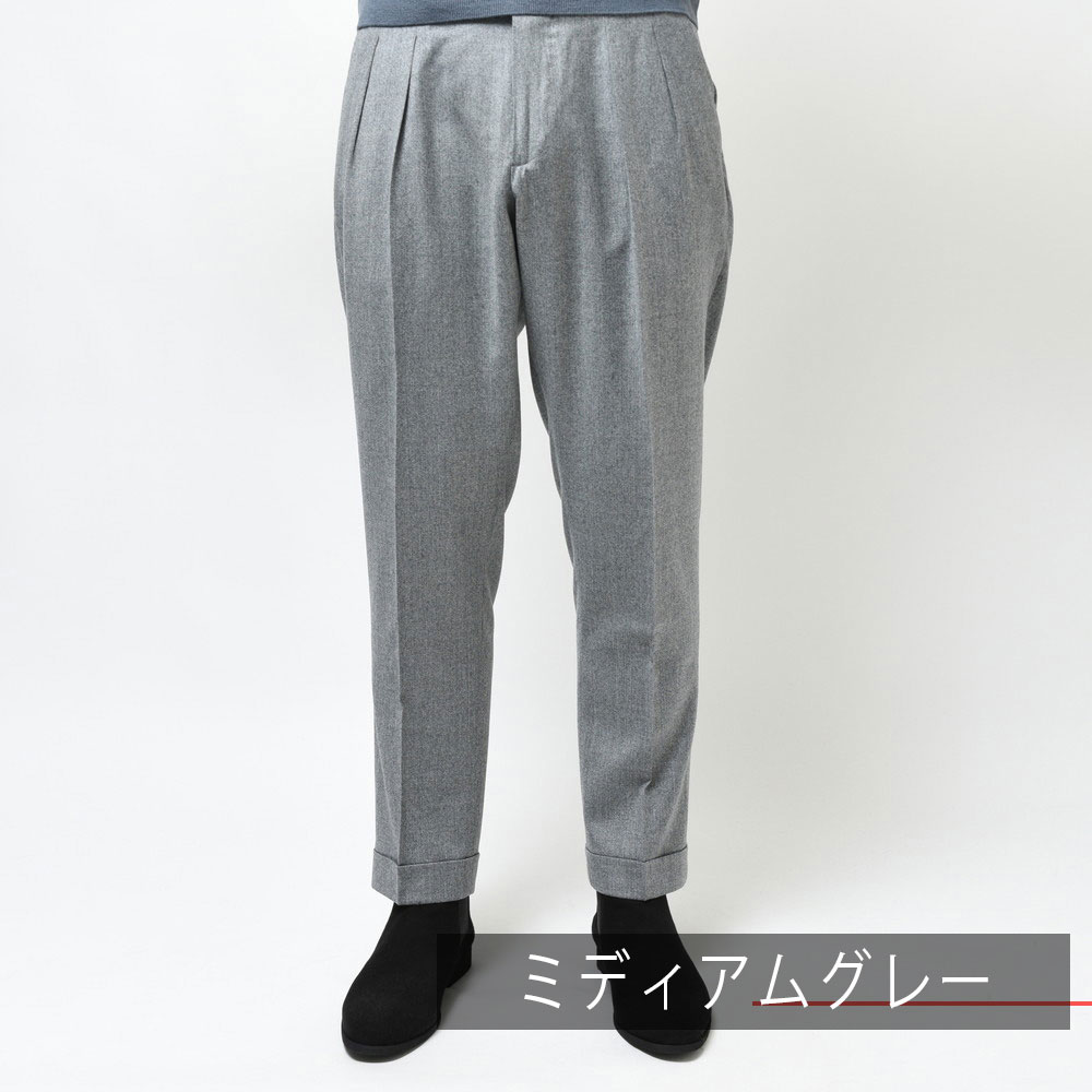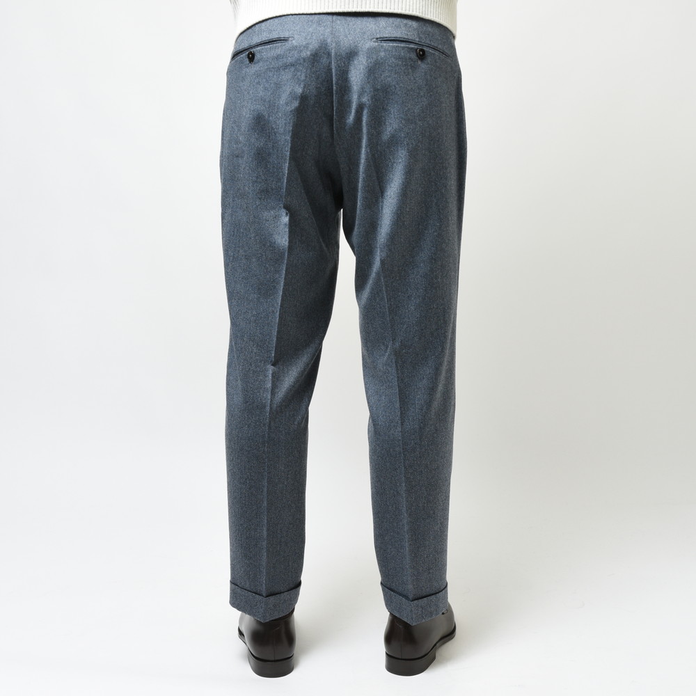 そしてクラシカルな2プリーツ、サイドアジャスター仕様。これらの要素により様々な脚の形に合わせることができるベーシックパンツです。