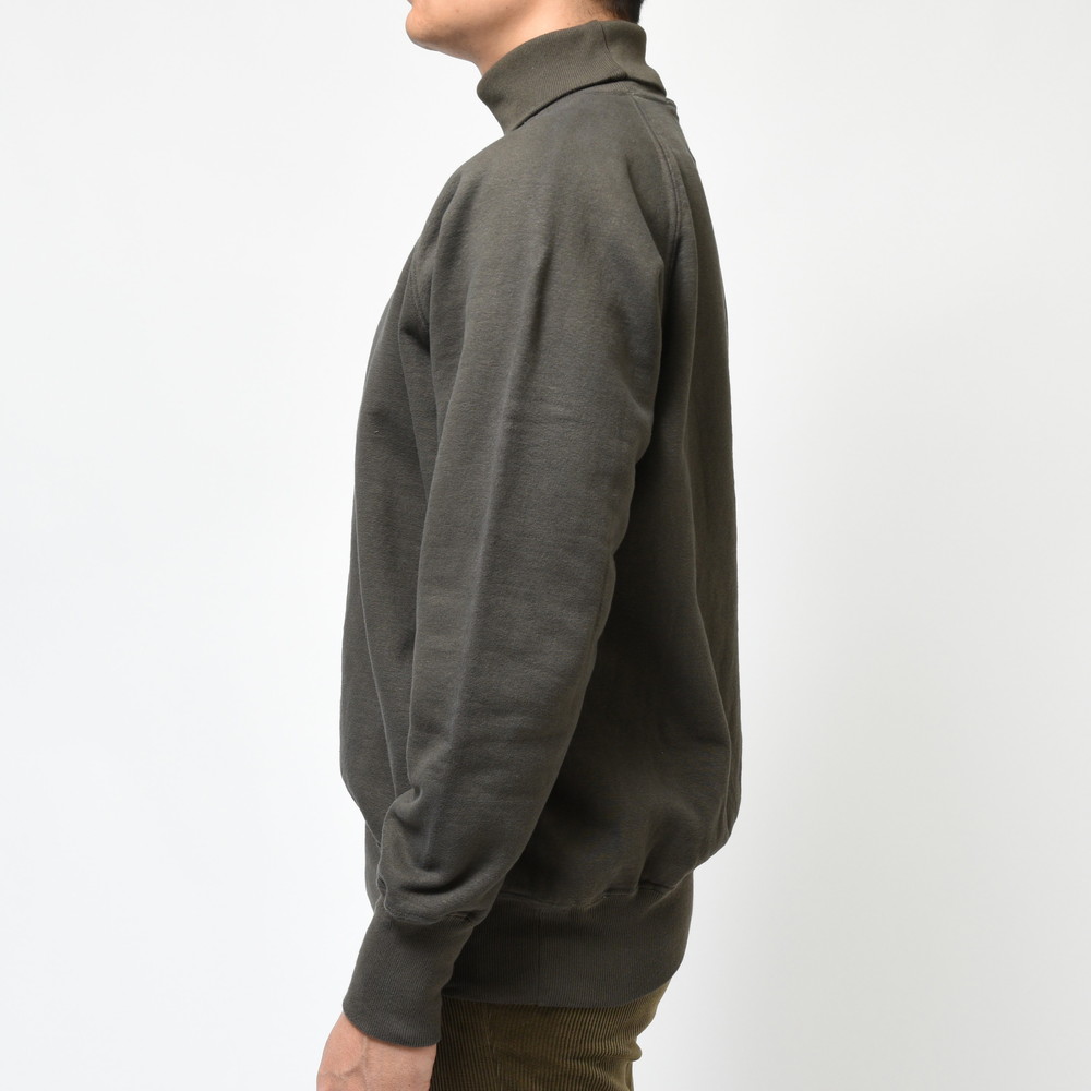 当たり前ではあるんですがニットのタートルネックとは全く別物、スウェット特有のデイリーな感じと言いますか、丁度良い日常着として活躍が期待できる存在となっています。