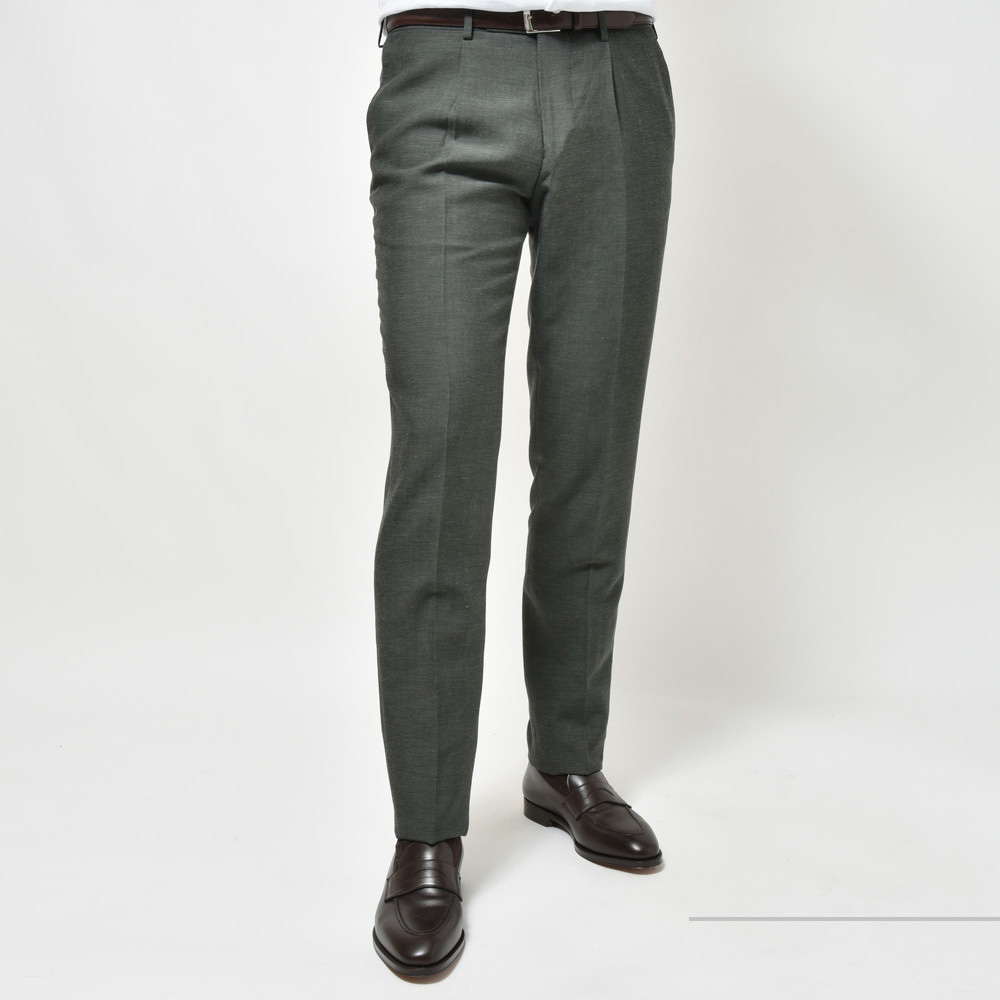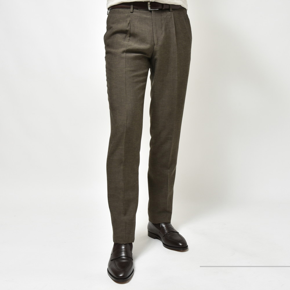 guji(グジ)がRING JACKET(リングヂャケット)に依頼して別注モデルを製作して頂いている、セットアップ対応可能な組下パンツ、こちらはVITALE BARBERIS CANONICOヴィターレ バルベリス カノニコ社のウールリネンリヨセルを用いた一本です。