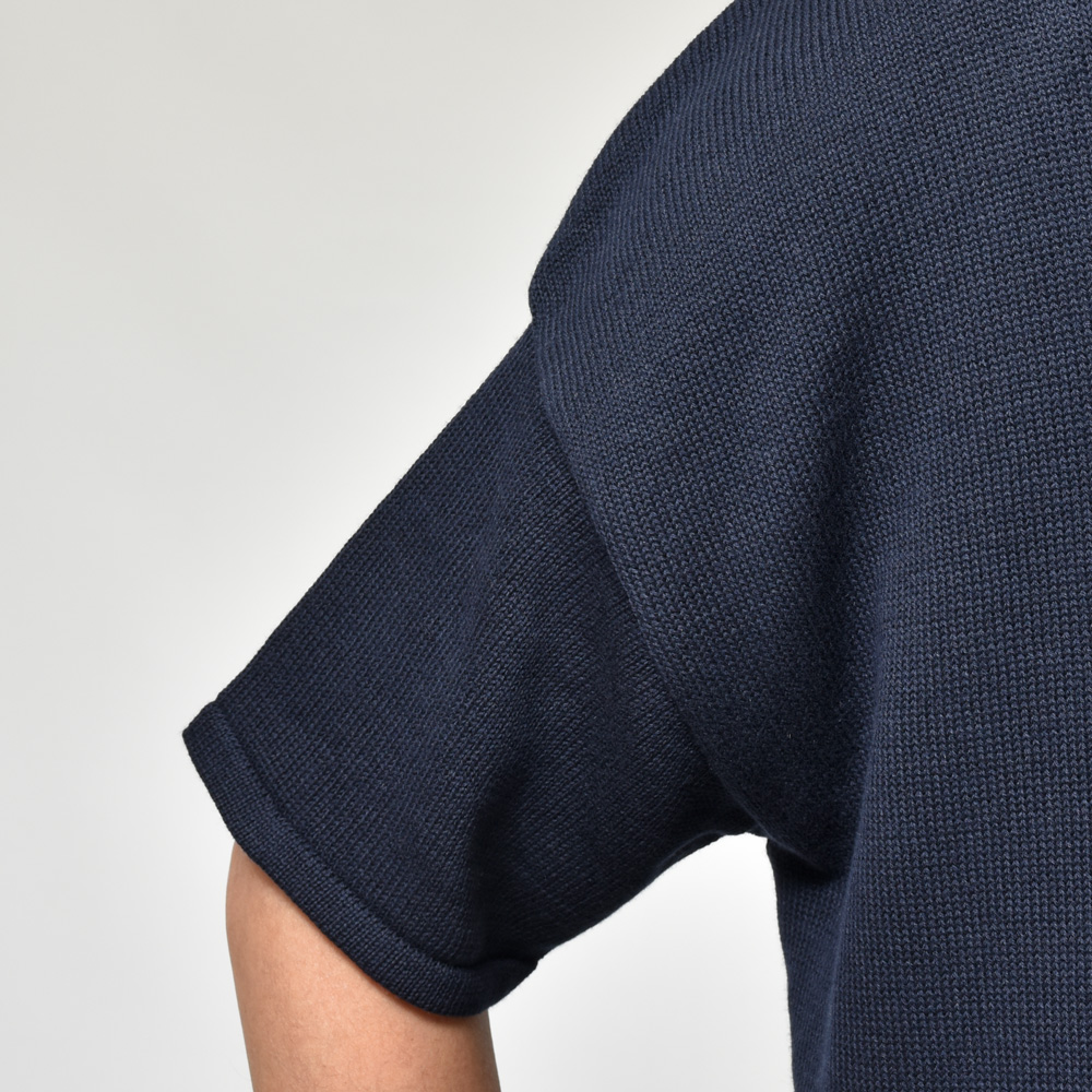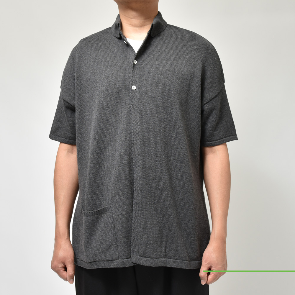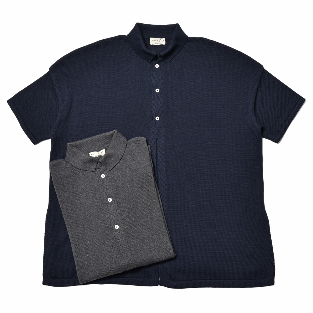 肩幅広め、袖短め、身幅ゆったり。ma'ry'yaらしいシルエットバランスを採用しつつポロのような襟とボタンの配置。それでいて前は開くようになっています(かぶりではなく羽織りになります)。