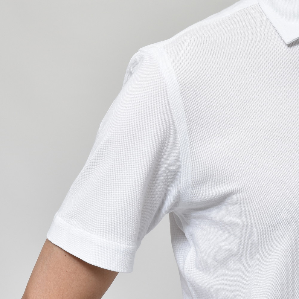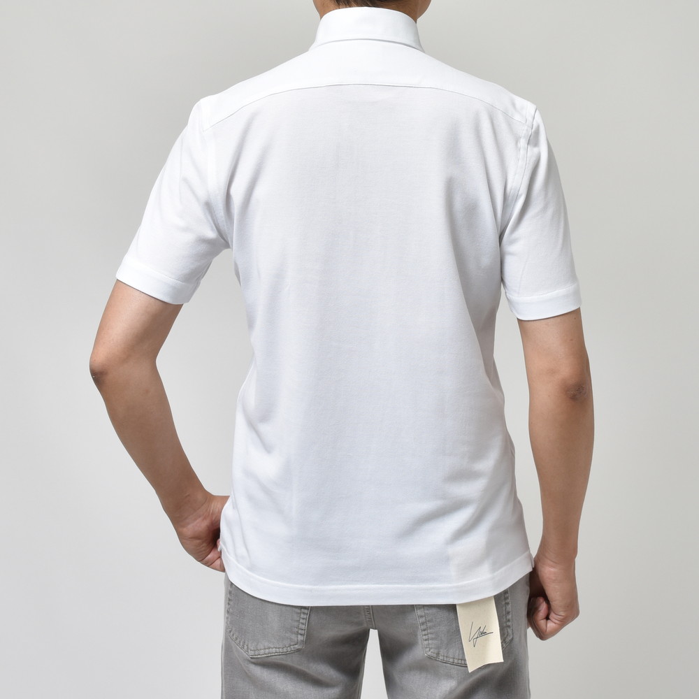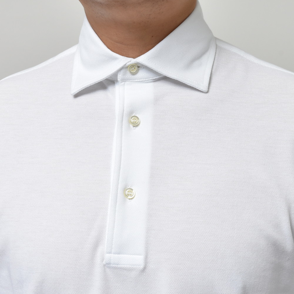 台襟があるので首元が非常にドレスライク、誠実さも備えたポロシャツでジャケットとの合わせも好印象です。