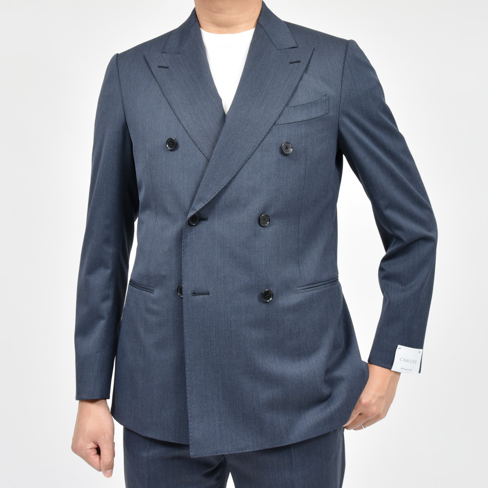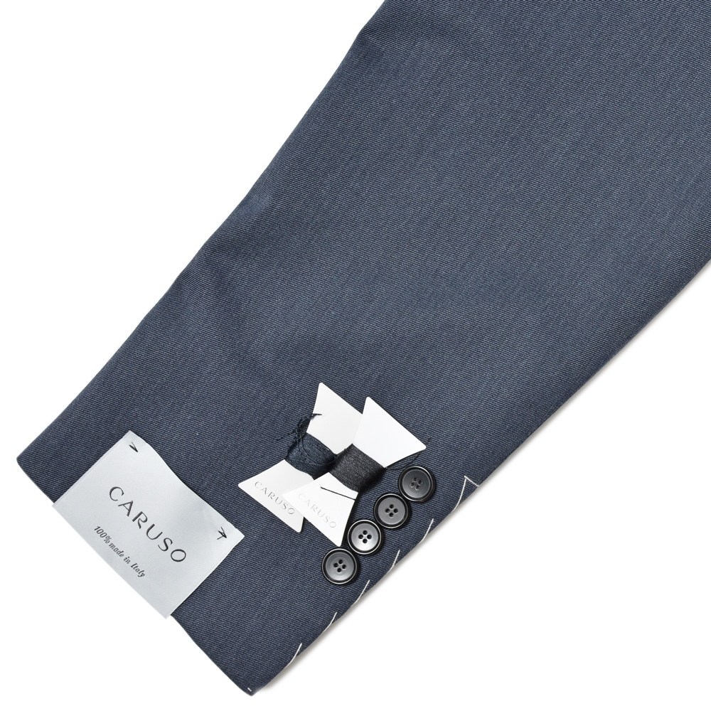 ナチュラルなショルダーに慣れていたので、こういった肩周りがしっかりとして見えるタイプは結構新鮮ですね。とはいえ、昔っぽい感じにならないのはCARUSOのセンスとテクニックがちゃんとしている証拠。