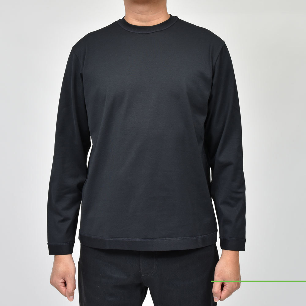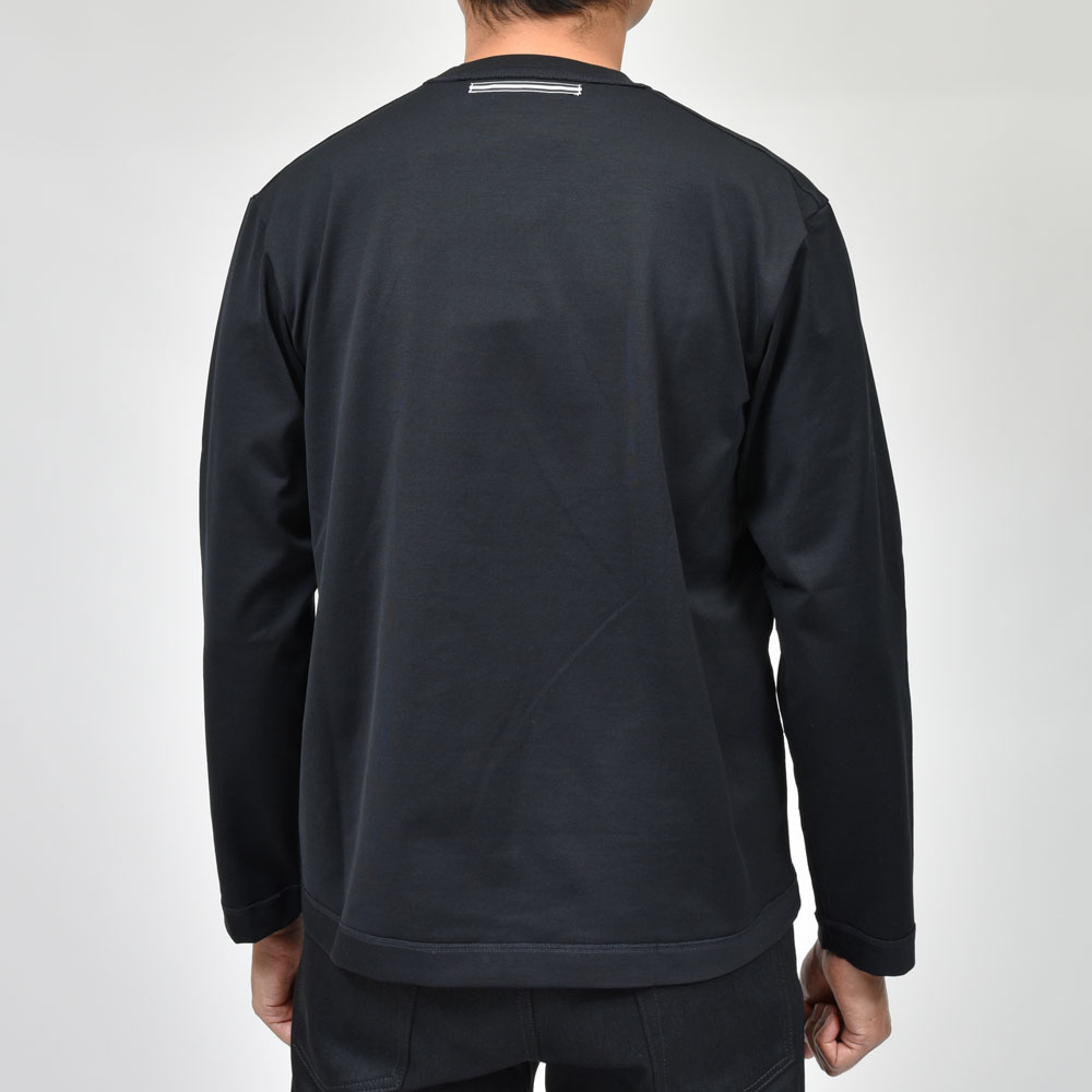 やや地厚でハリ感のあるカットソー、一枚着としても有用なアウターロンTと言った所でしょうか。シルエットは細くもなく太くもない最もスタンダードなシルエット、故に長く使うことが出来ます。