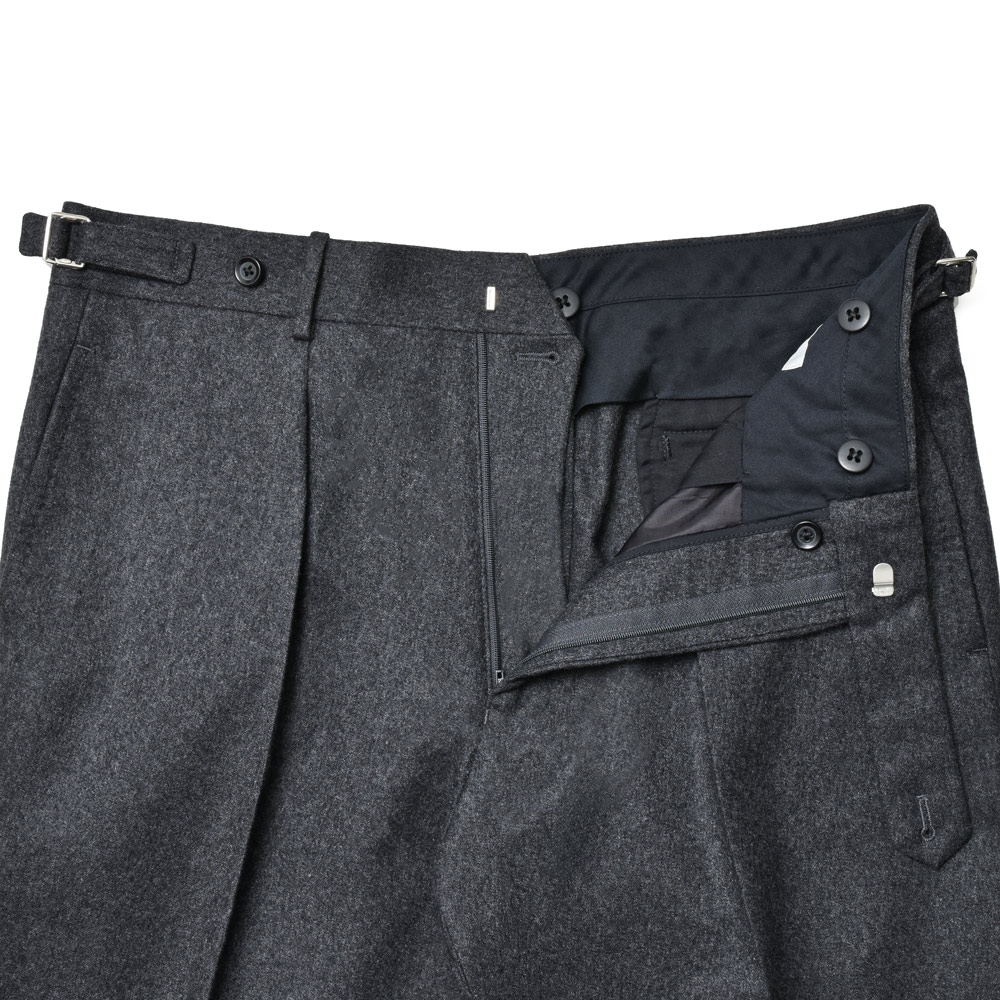 pants03 ウールフランネル1プリーツサイドアジャスターテーパードパンツ