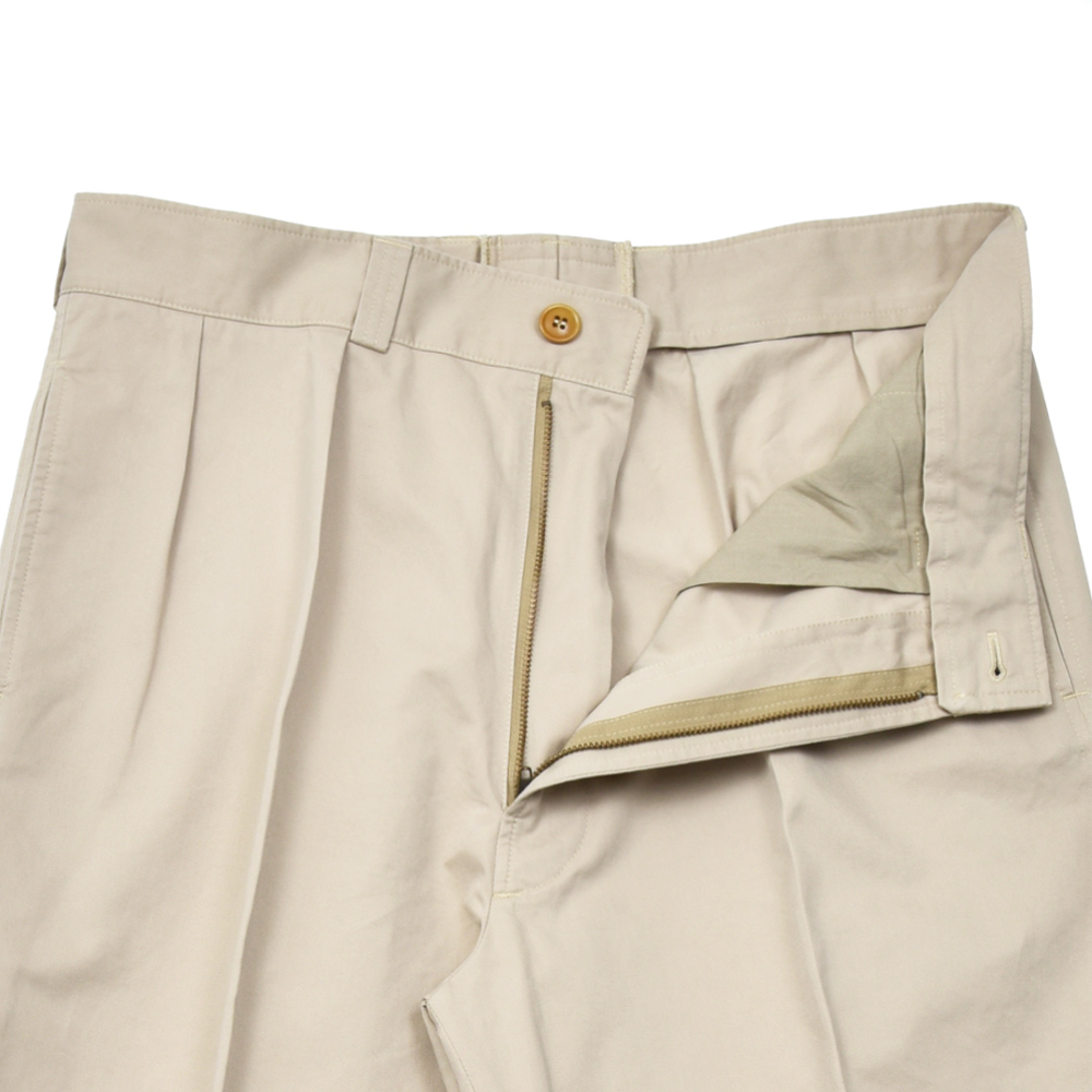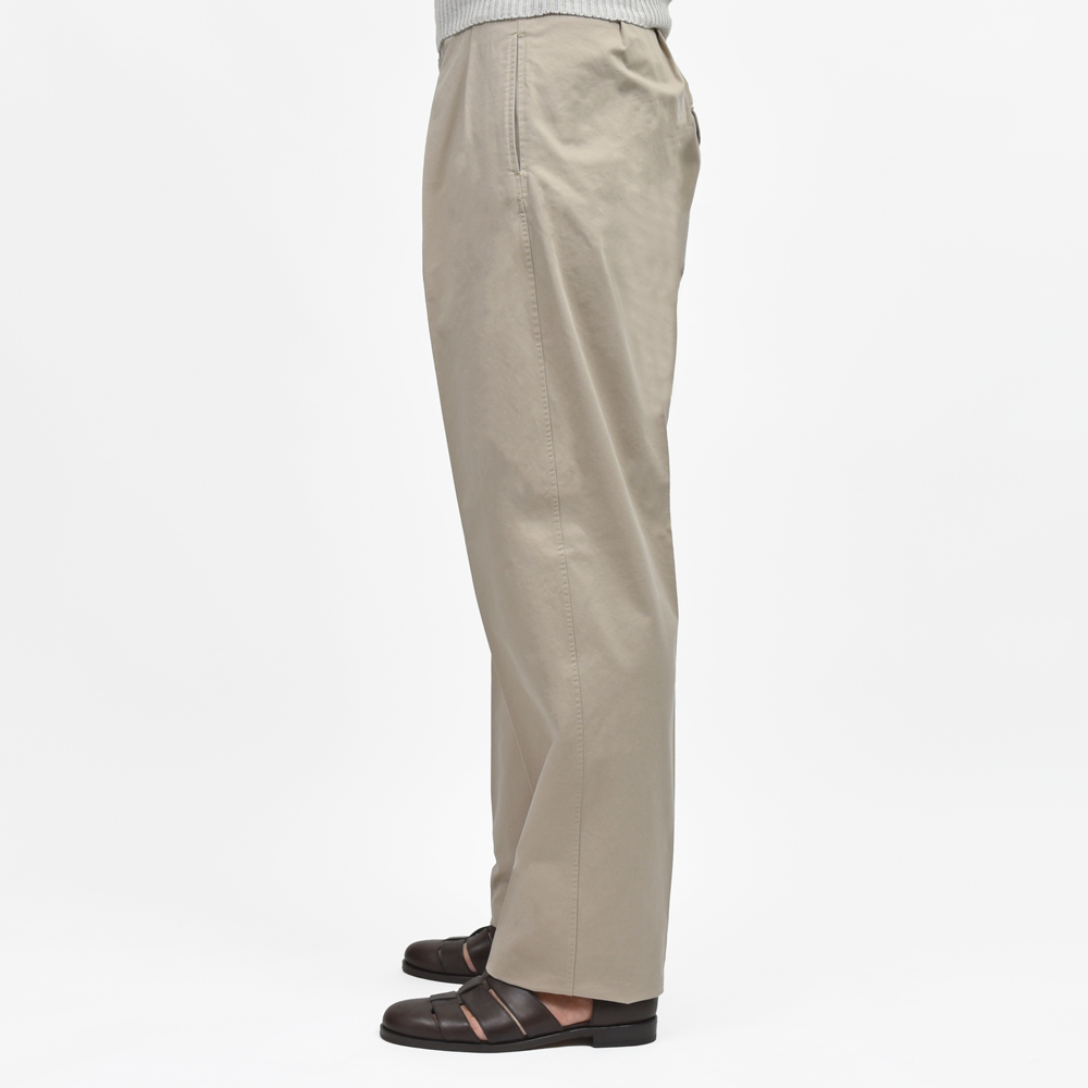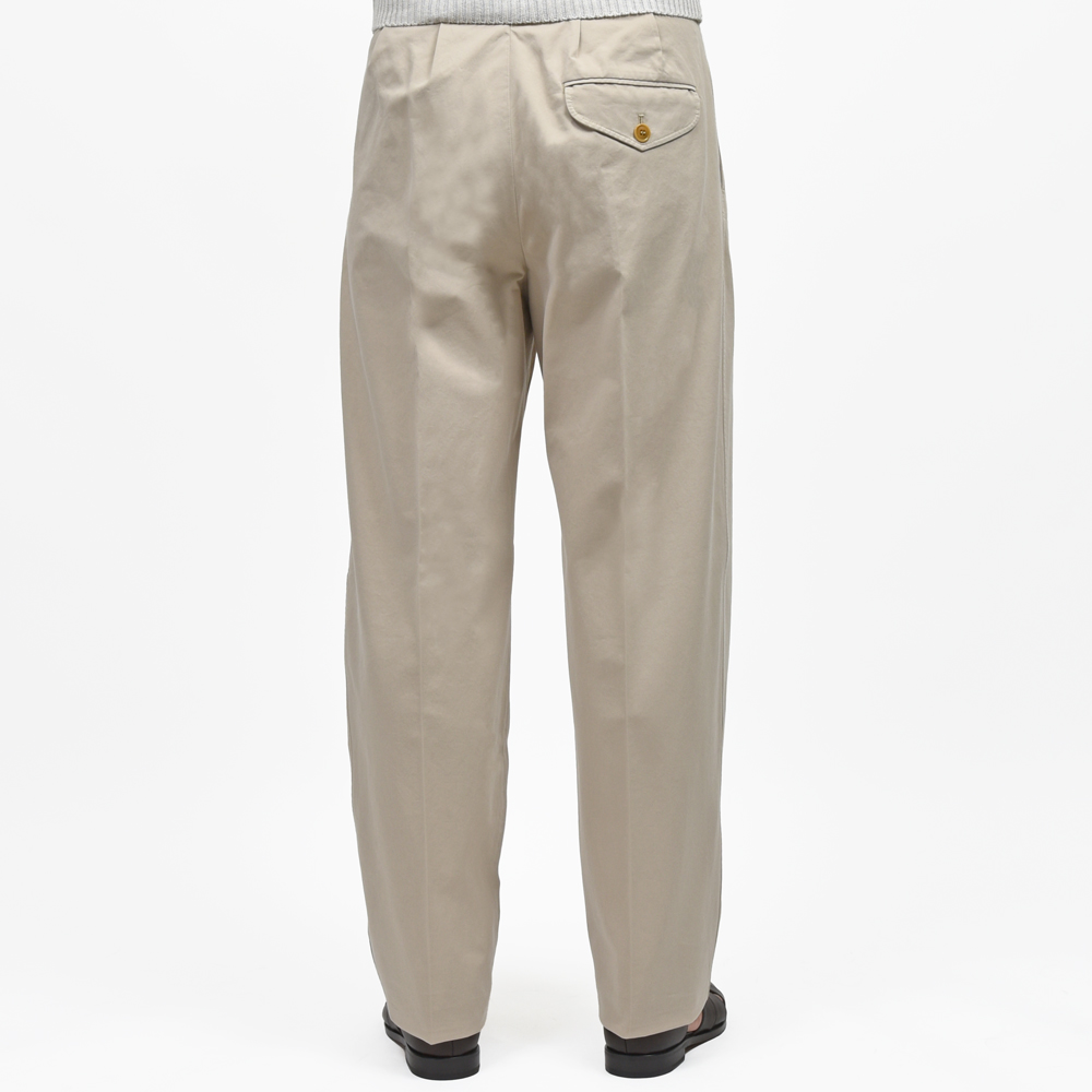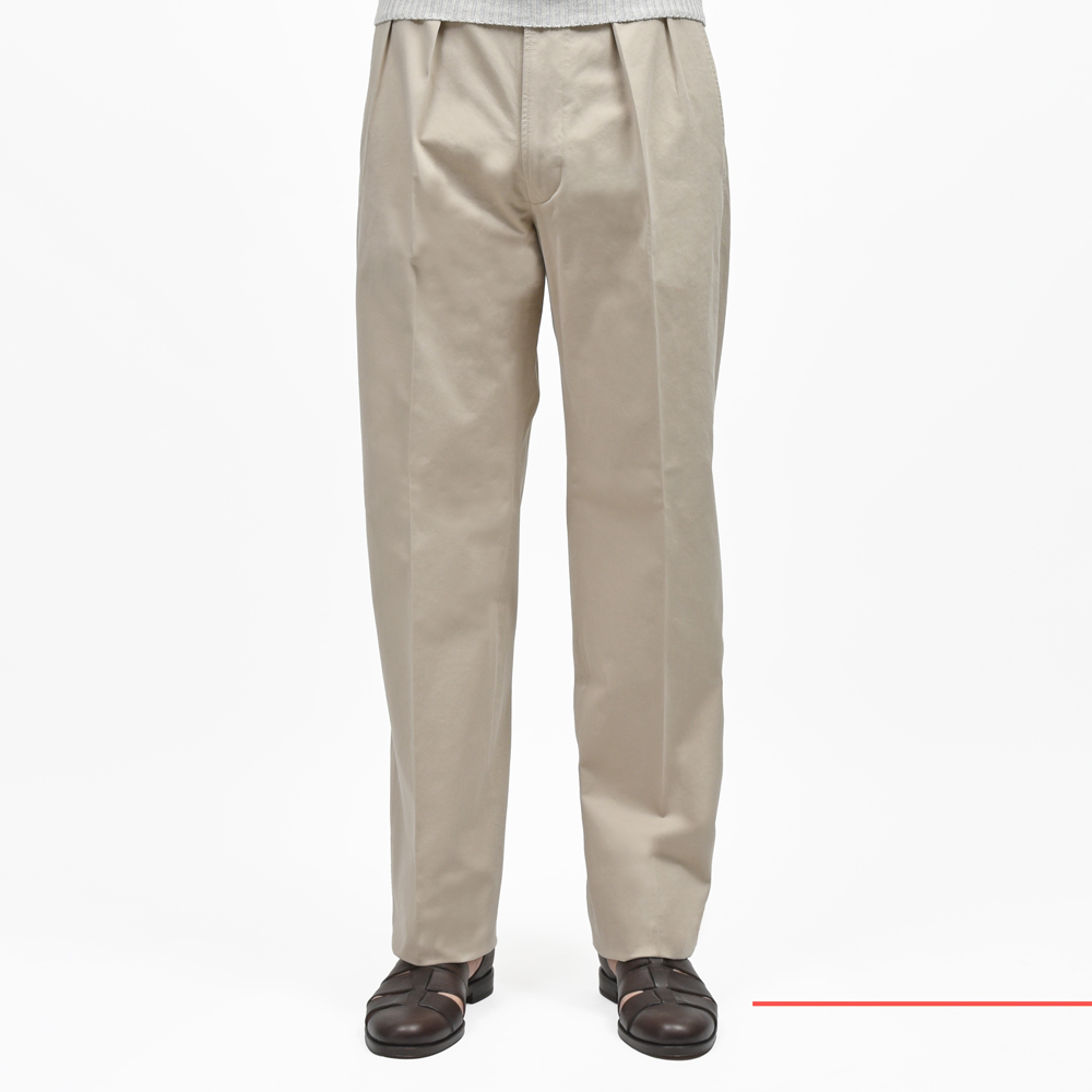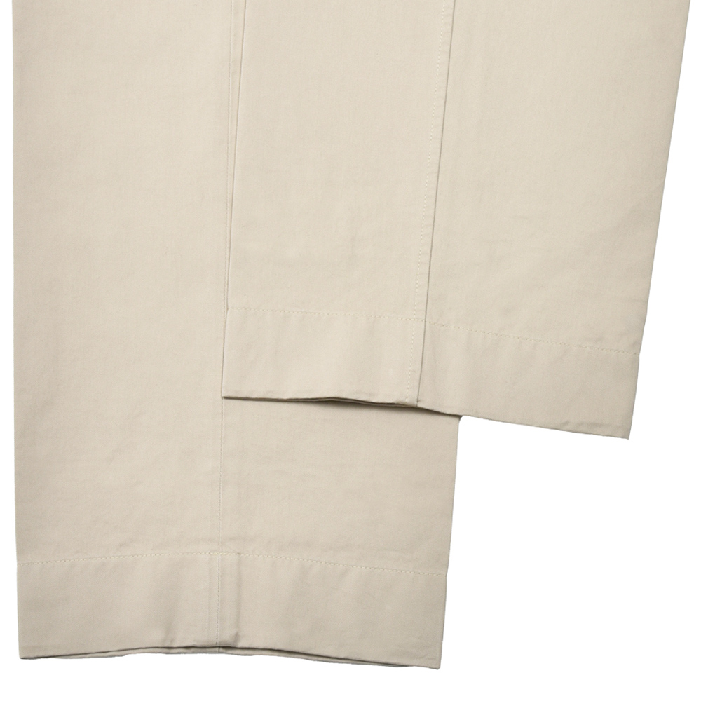 ここ数年でこういったストレート型のタイプに馴染んできた方も多いんじゃ無いでしょうか。ミリタリーのチノパンの野暮ったさもそれはそれで魅力的ですが、ドレスの要素が付加されたこちらはまさに大人の着用に耐えうる仕上がりになっています。